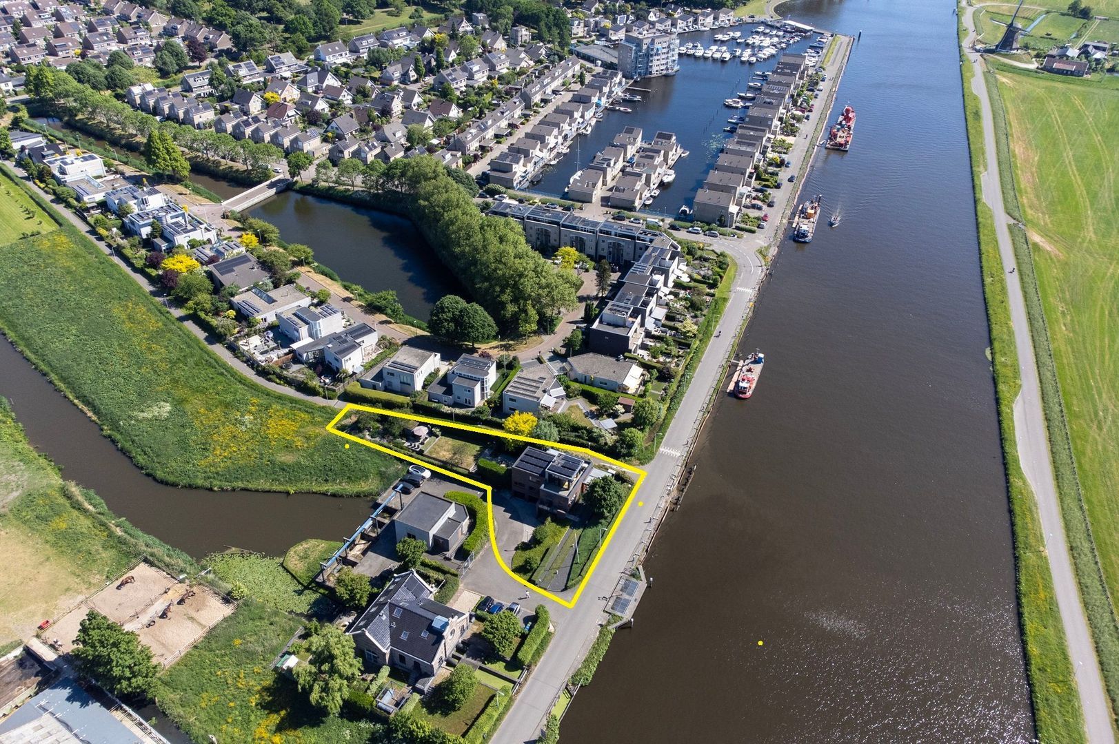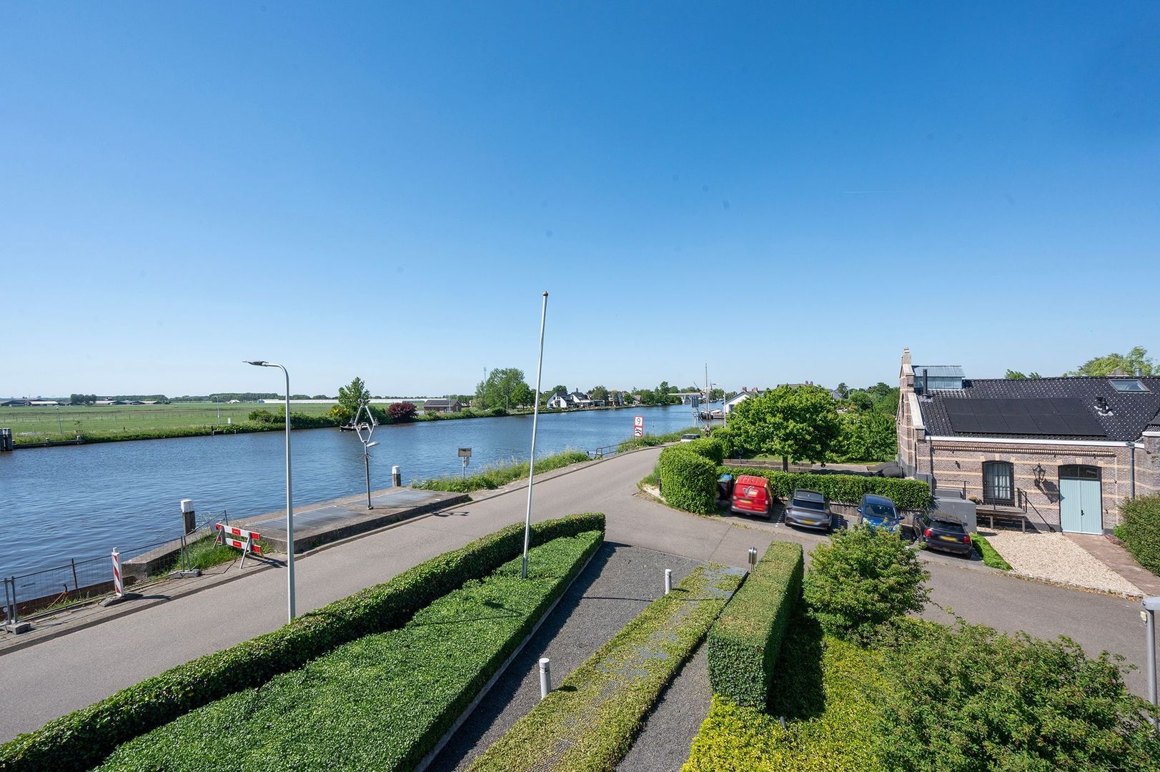 De woning ligt aan de Woubrugseweg met vrij uitzicht op de Staande Mast Route. Een beroemde vaarverbinding waar zeiljachten en motorboten rustig voorbijtrekken op weg tussen het IJsselmeer en de Zeeuwse wateren. Vanuit de woning vormt dit een levendig en steeds wisselend decor: in de zomer varen de boten bijna geruisloos voorbij, terwijl in de winter de rust van het polderlandschap overheerst. Hoewel de woning zelf niet direct aan het water ligt, bevindt u zich hier midden in een waterrijke omgeving. Binnen enkele minuten bereikt u het water richting het Braassemermeer, de Kaag en de Westeinde Plassen. Ideale gebieden voor varen, suppen, zwemmen of een dag op het water met familie en vrienden.