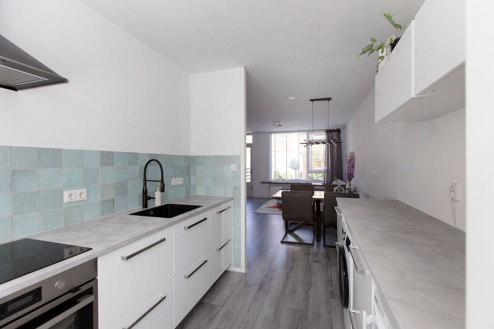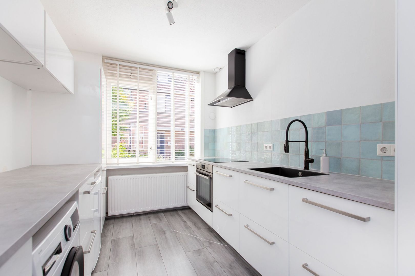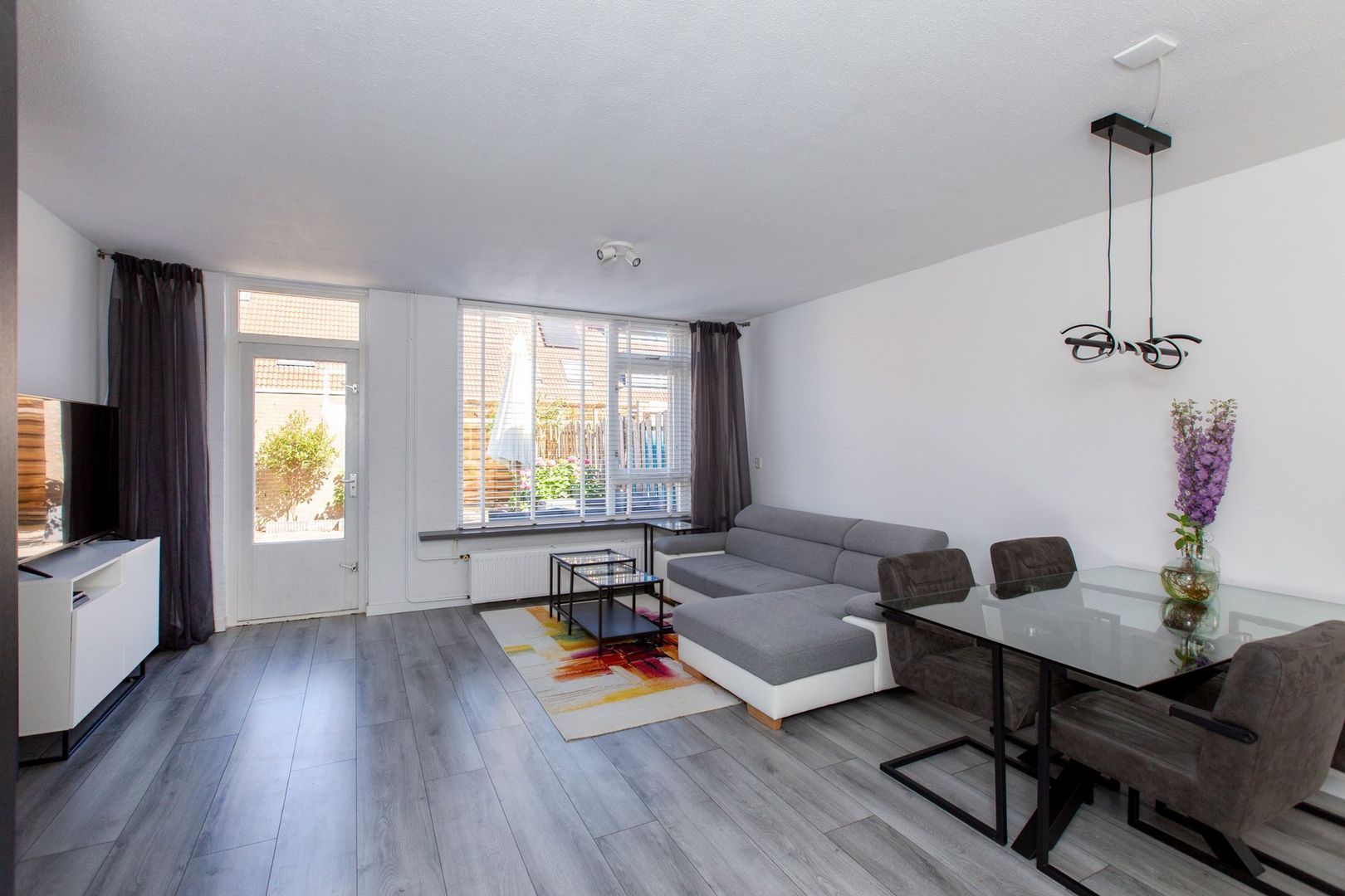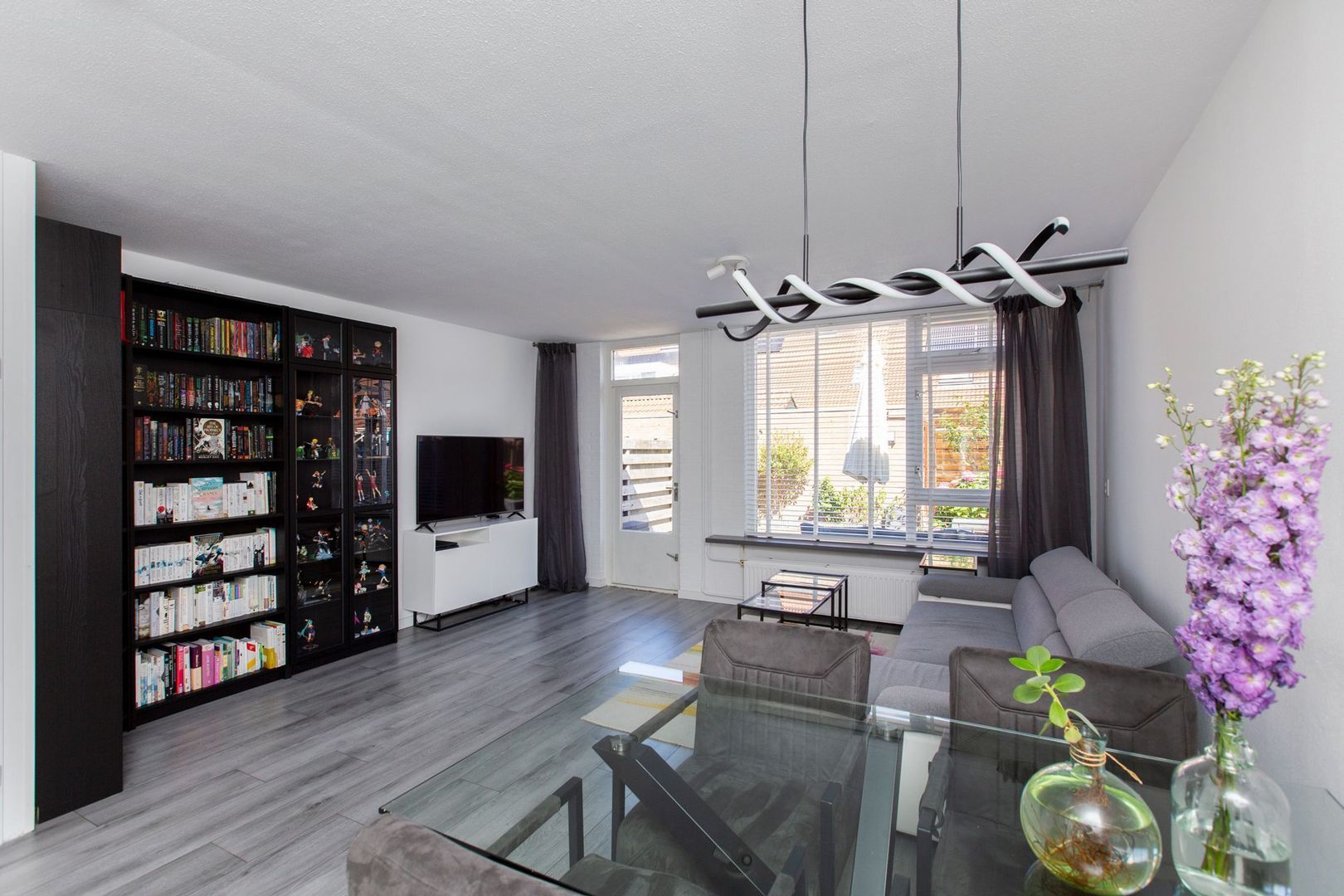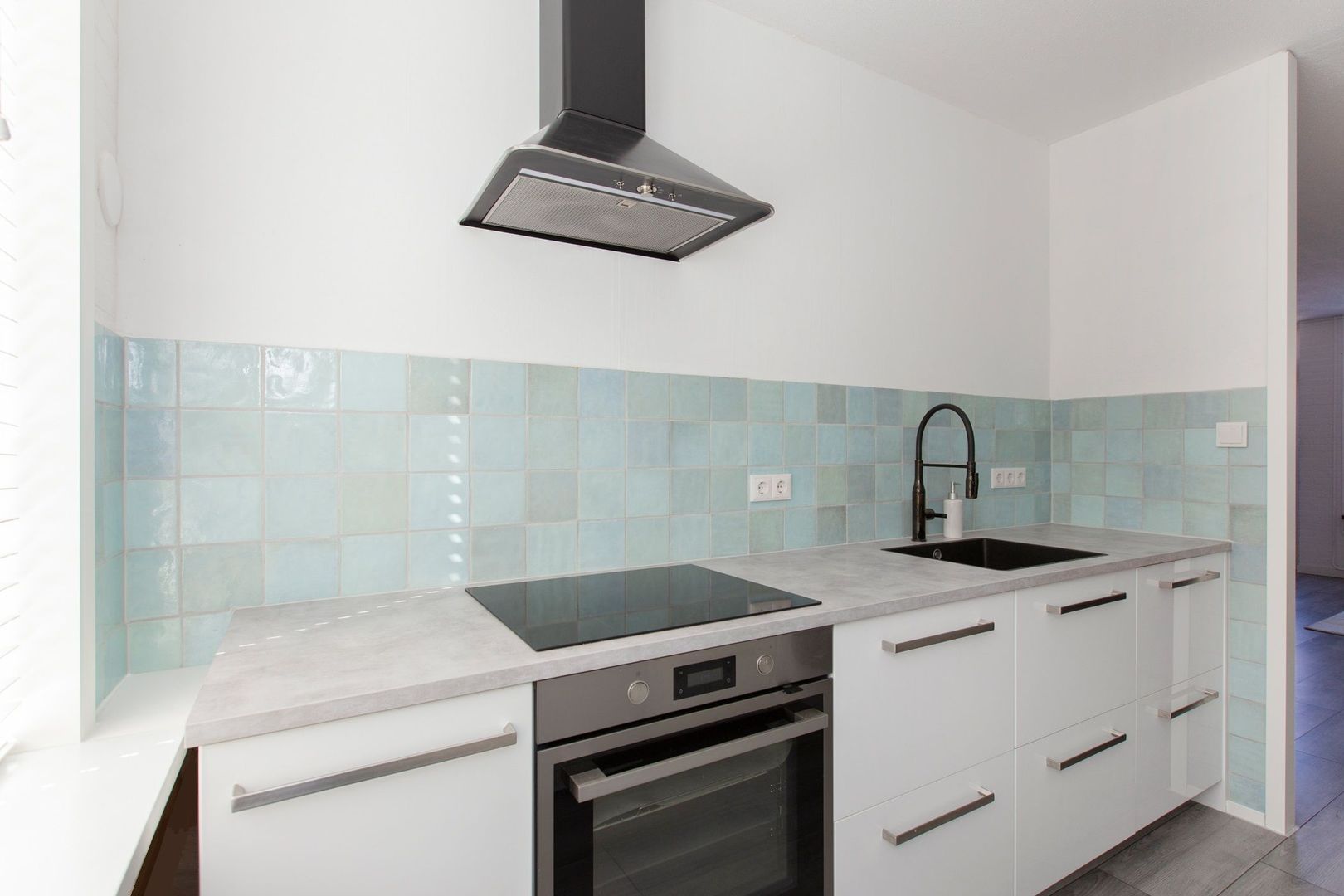 Vanuit hier loopt u door naar de woonkamer. Aan de voorzijde is een vernieuwde half open keuken geplaatst, voorzien van een inductiekookplaat, afzuigkap, vaatwasser, koelkast, vriezer, oven en een aansluiting voor de wasmachine. Aansluitend bevindt zich de tuingerichte, brede woonkamer met nette wandafwerking en een recent vernieuwde vloer. De woonkamer beschikt ook over een praktische trapkast en geeft toegang tot de zonnige achtertuin.