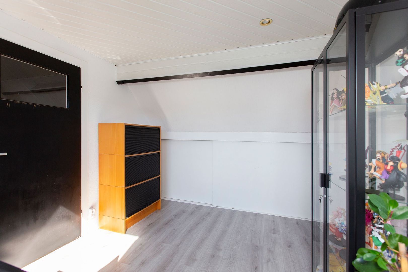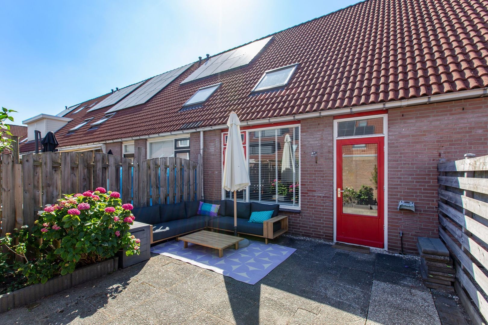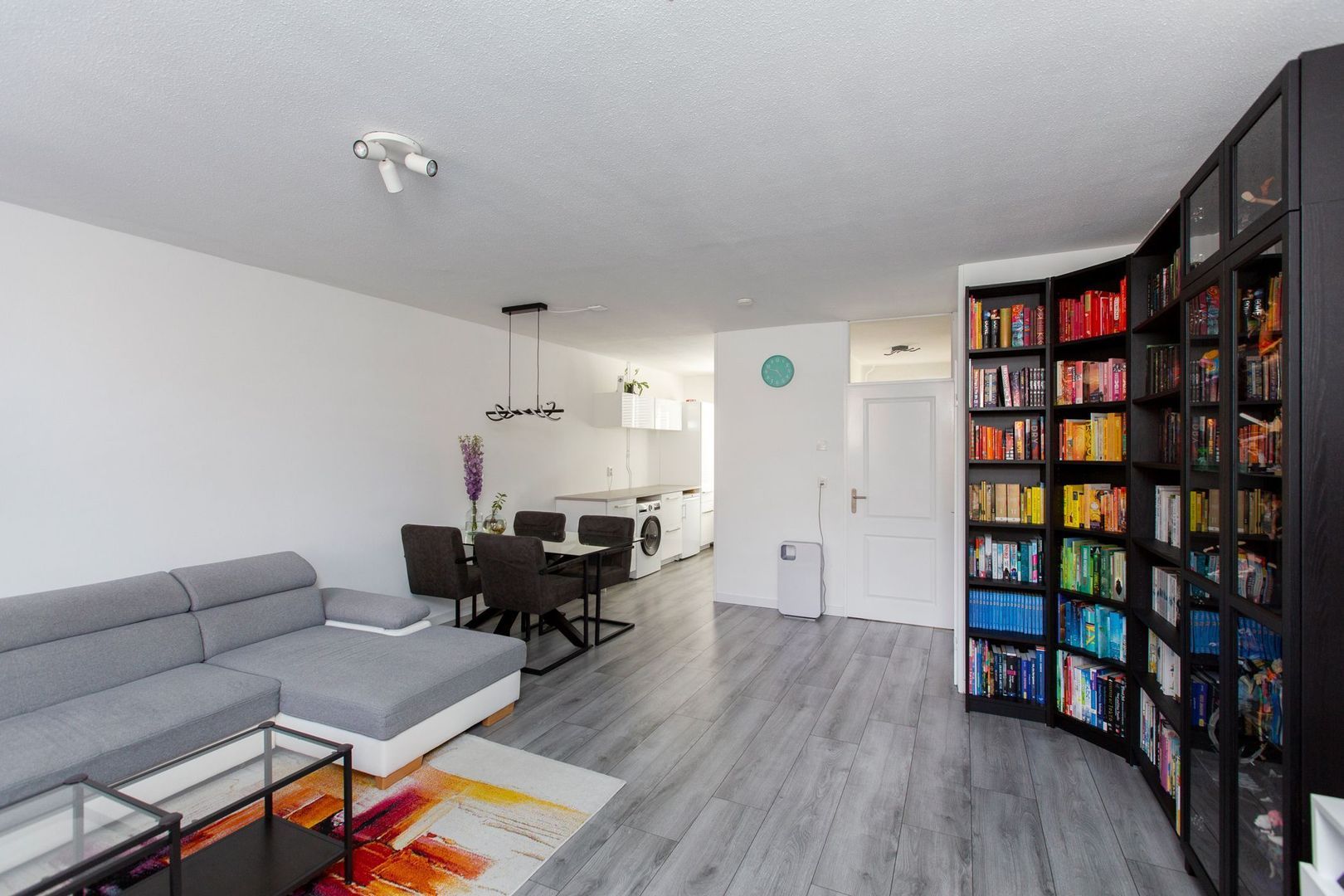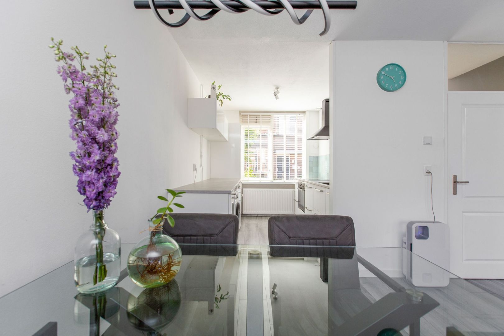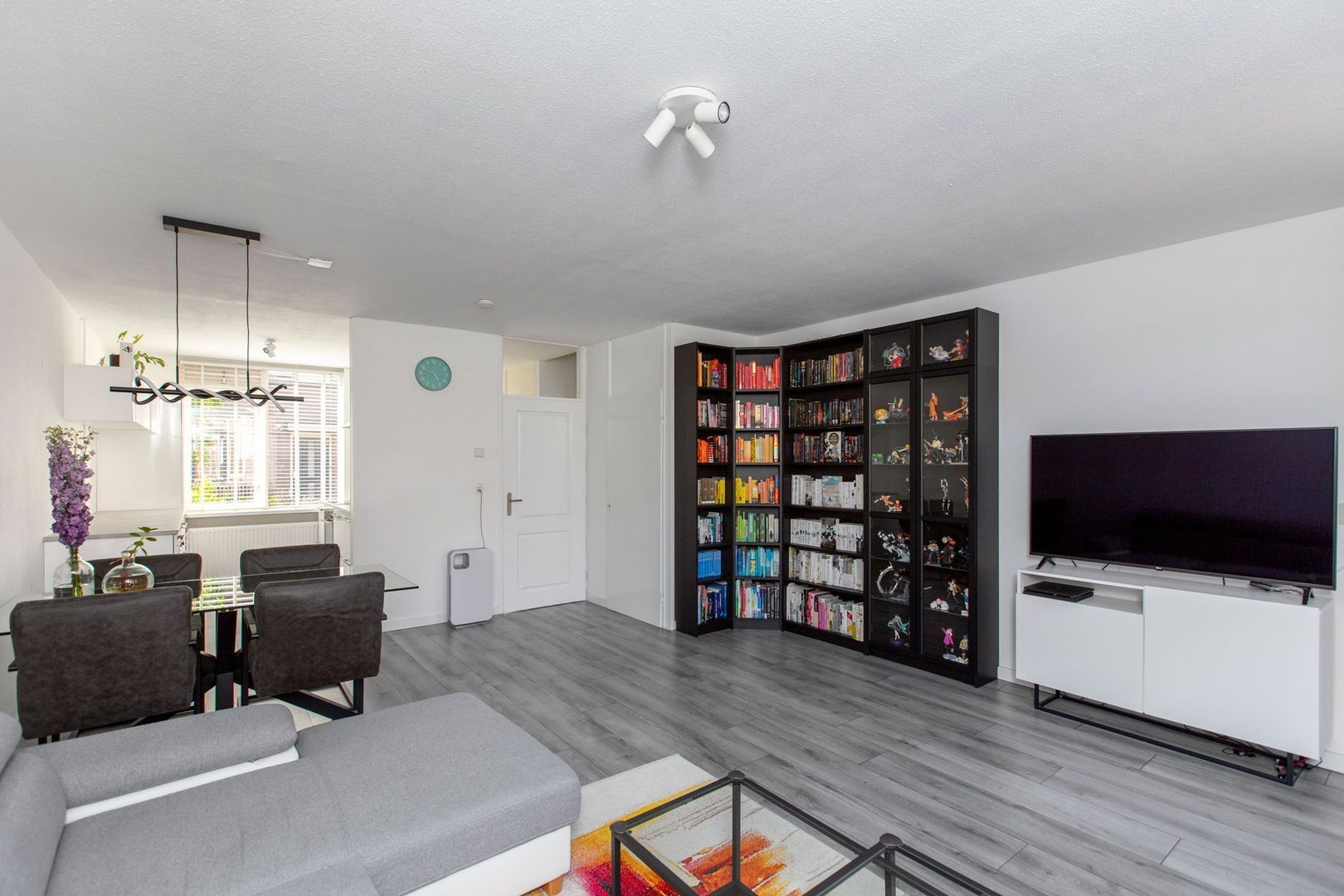 Vanuit hier loopt u door naar de woonkamer. Aan de voorzijde is een vernieuwde half open keuken geplaatst, voorzien van een inductiekookplaat, afzuigkap, vaatwasser, koelkast, vriezer, oven en een aansluiting voor de wasmachine. Aansluitend bevindt zich de tuingerichte, brede woonkamer met nette wandafwerking en een recent vernieuwde vloer. De woonkamer beschikt ook over een praktische trapkast en geeft toegang tot de zonnige achtertuin.