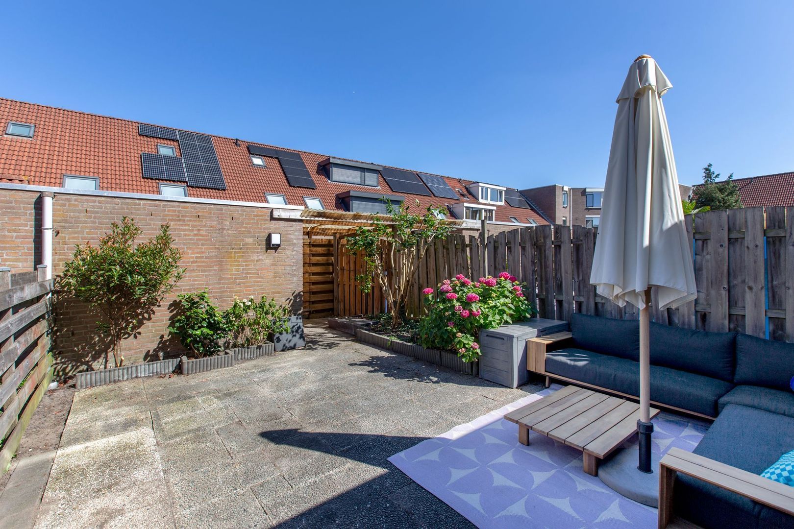 De achtertuin is onderhoudsvriendelijk aangelegd en beschikt over een stenen berging en een achterom.