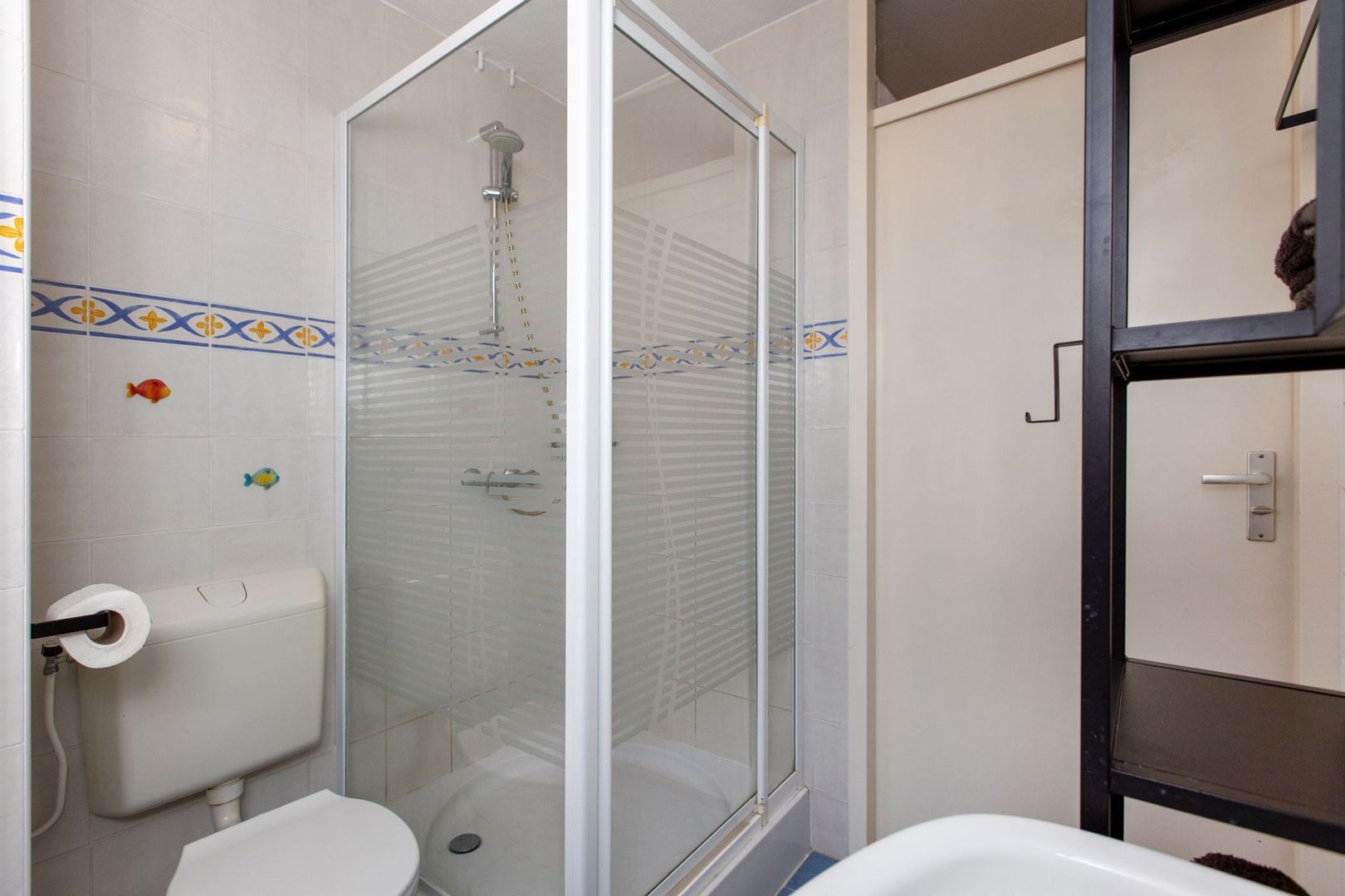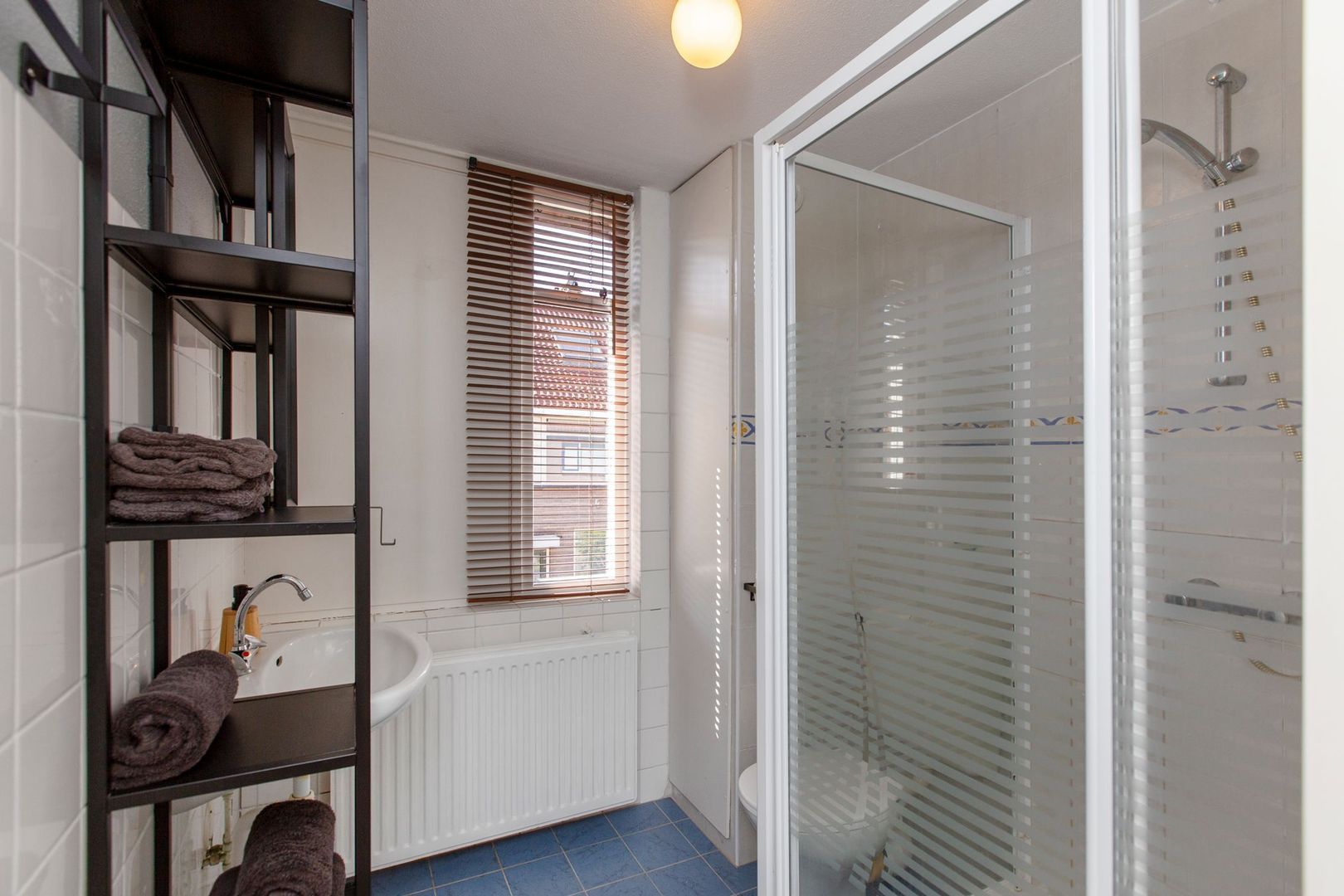 Op de eerste etage vindt u twee slaapkamers: één ruime kamer aan de achterzijde en een kamer aan de voorzijde met wastafel. Daarnaast is er een badkamer met wastafel, toilet en een douchehoek.