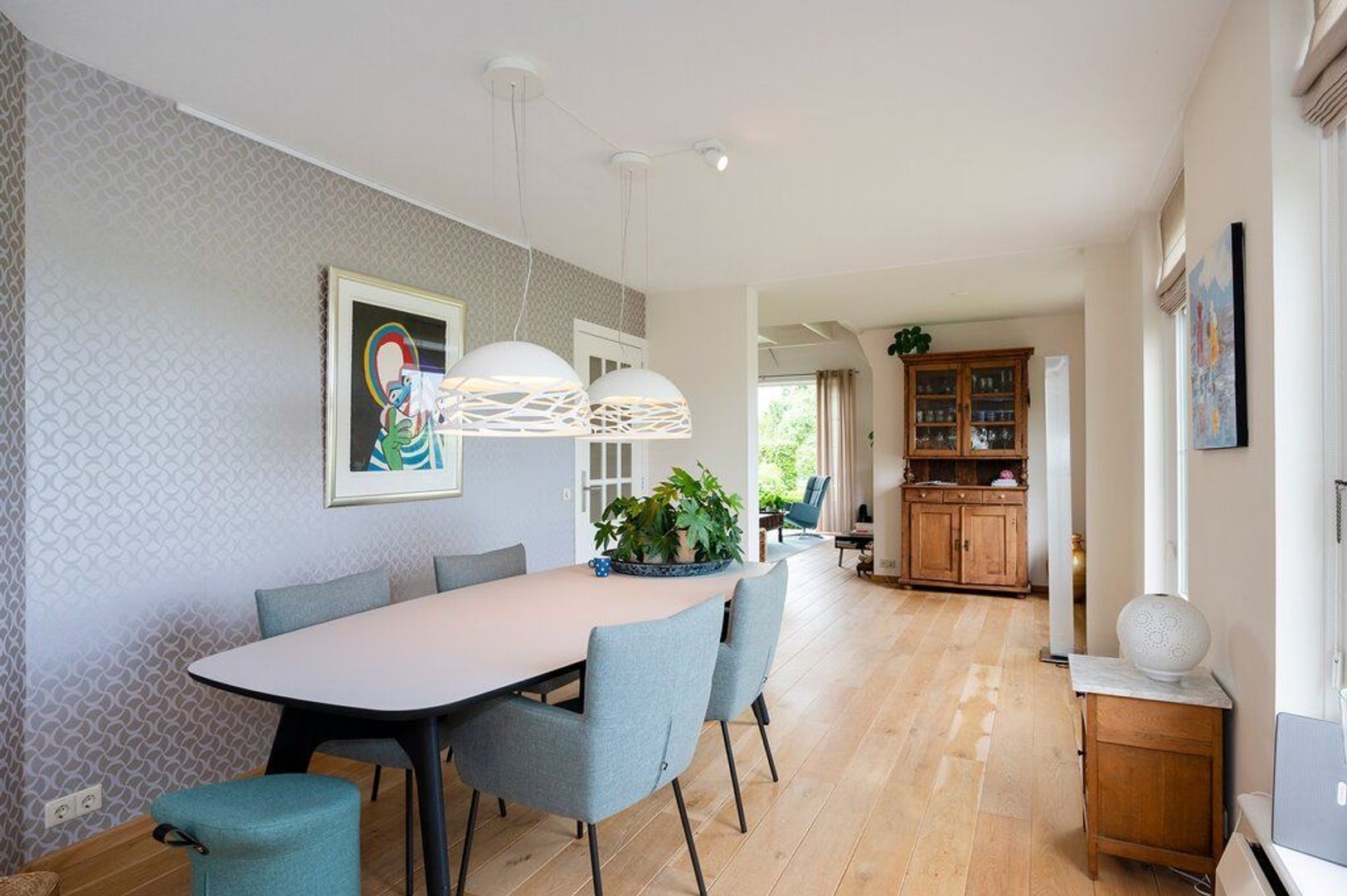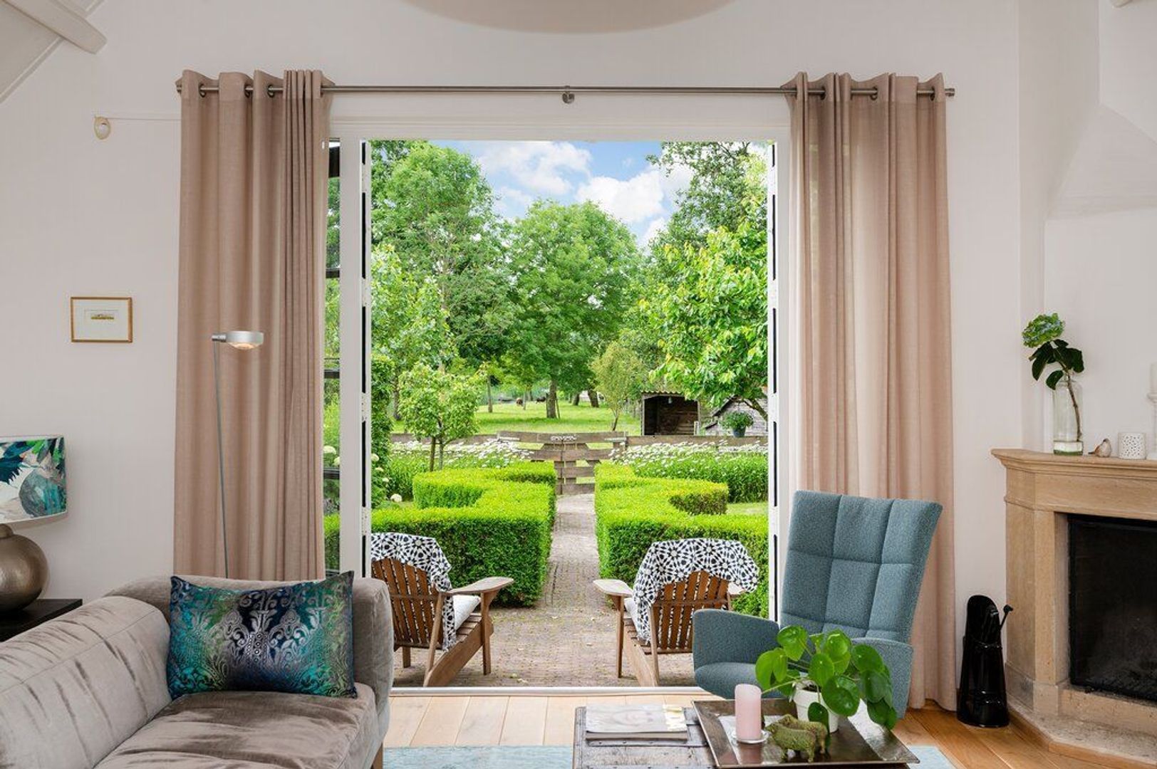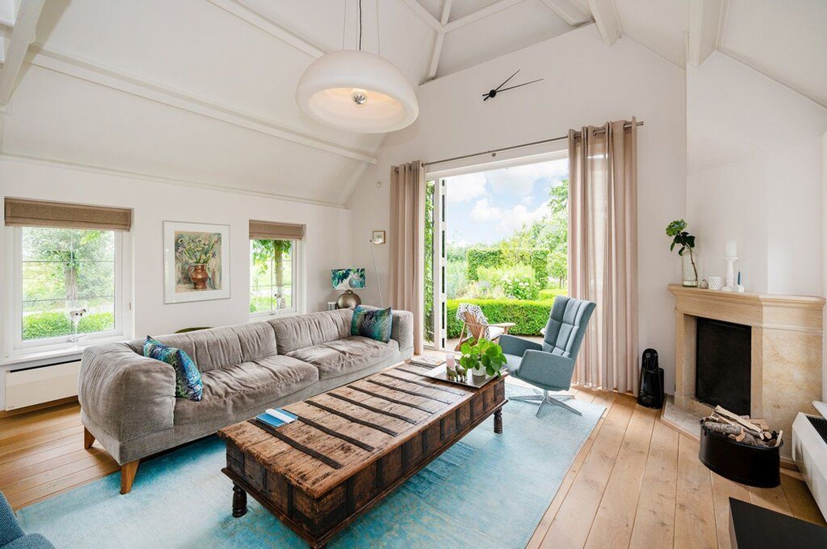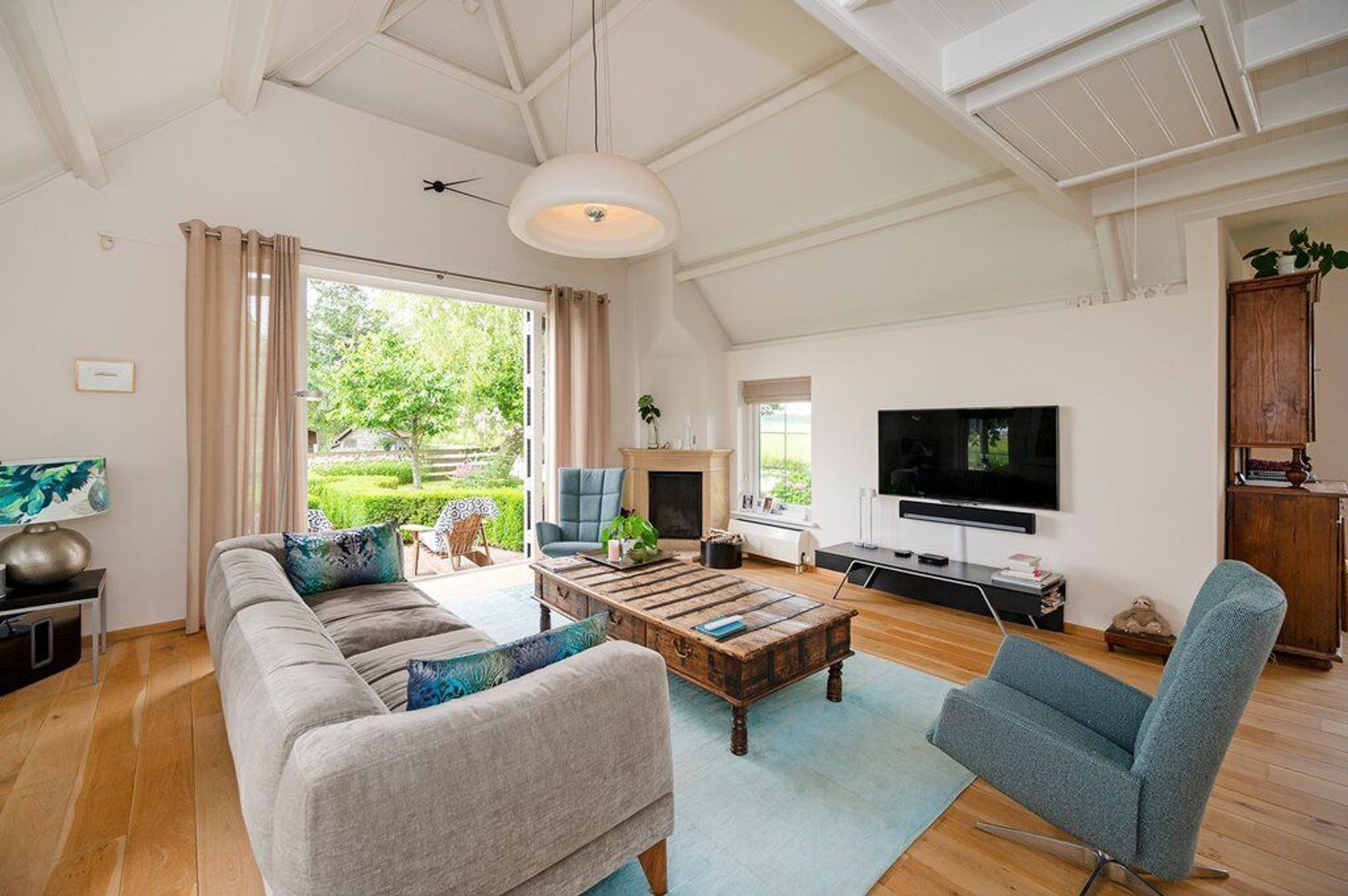 Vanuit de woonkamer heeft u openslaande deuren richting de zijtuin en een weilandje welke tot uw perceel behoort. Hier staan een aantal walnotenbomen tezamen met een kippenhok. In de woonkamer heeft u binnenshuis zicht tot in de nok waar een speelse boekenkast is gesitueerd, deze is te bereiken door middel van een vlizotrap. Verder is hier een gezellige openhaard te vinden en staat deze ruimte in open verbinding met de eetkamer.