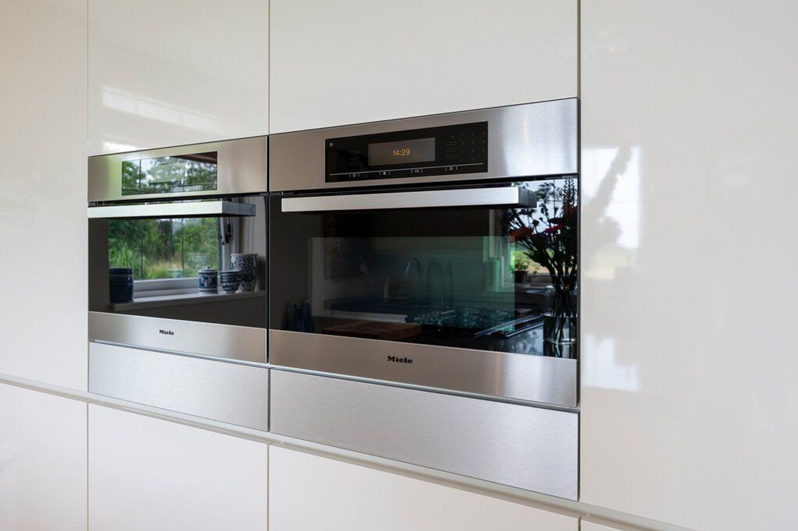 De sfeervolle en uiterst moderne keuken met ontbijtbar is voorzien van een 5-pits gaskookplaat met daarachter een verzonken afzuiger in het aanrechtblad, Miele inbouwapparatuur (oven en stoomoven), Quooker, vaatwasser, koelkast en vriezer. Naast de keuken treft u nog een bijkeuken met bergruimte en de aansluitingen voor de wasmachine en de droger.