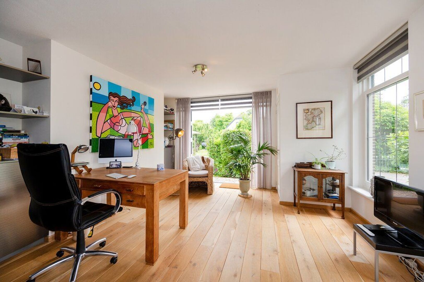 Hal/entree in de zijgevel van de woning aan de wegzijde. De hal biedt doorgang tot het zeer ruime kantoor met plezierig uitzicht, voorzien van inbouwkasten en openslaande deuren naar de tuin. Verder vindt u in de hal een separaat toilet voorzien van een vrij hangend closet en fontein, doorgang naar de woonkamer alsmede de eetkamer en de trapopgang naar de verdieping.