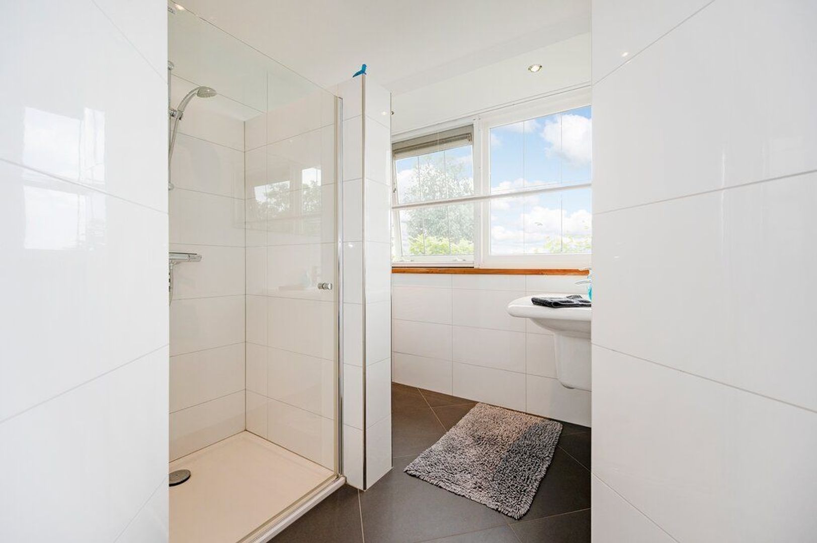 De overloop op de 1e etage biedt toegang tot alle drie de slaapkamers die op deze verdieping zijn gelegen. Eén van deze slaapkamers beschikt over een badkamer en suite, welke is voorzien van een douchehoek met zicht over de weilanden en dubbele wastafel. De andere twee slaapkamers delen een gezamenlijke badkamer met een douchehoek, wastafel en designradiator en hebben beiden een groot dakkapel. Tot slot is er op deze verdieping nog een separaat toilet te vinden met een vrij hangend closet en fontein.