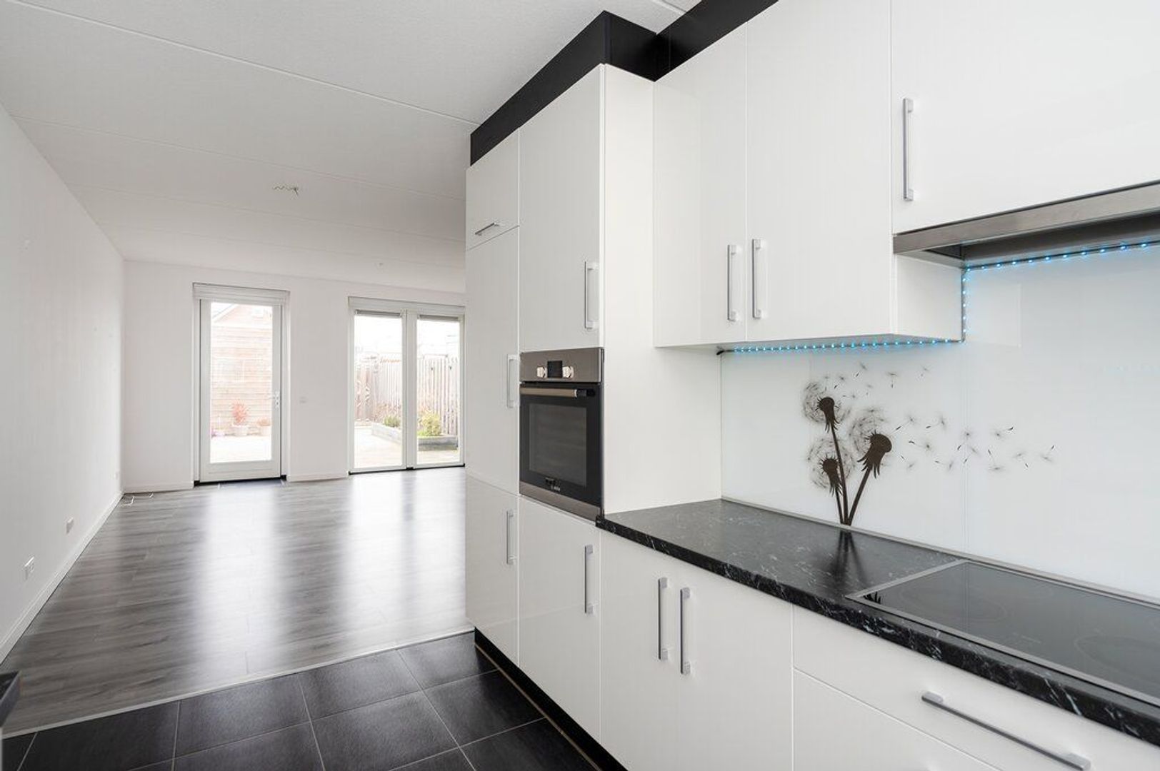 Hal/ entree met meterkast welke is voorzien van elektra, water en glasvezel aansluitingen, toilet met hangend closet en trapopgang. Eenmaal in de woonkamer wordt u verrast door een grote raampartij richting de tuin wat voor veel lichtinval zorgt. De woonkamer staat in verbinding met de open keuken welke is voorzien van Bosch oven, inductiekookplaat en vaatwasser. Verder heeft u in de keuken veel kastruimte. Ook vinden we in de woonkamer een trapkast met daarin de warmtepomp verwerkt. Doormiddel van de riante raampartij in de woonkamer staat deze in verbinding met de tuin.