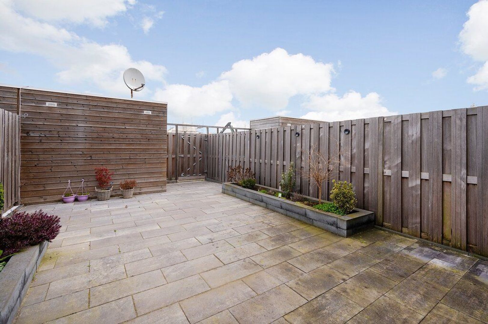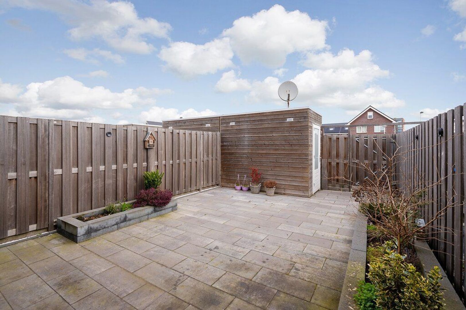 Nette onderhoudsvriendelijke tuin waar twee gezellige fleurige borders zijn geplaatst. Achterin de tuin bevindt zich een grote berging met elektra voorzieningen. De tuin is naast de tuindeur ook via een achterom te bereiken, praktisch om bijvoorbeeld uw fiets in de schuur te plaatsen.