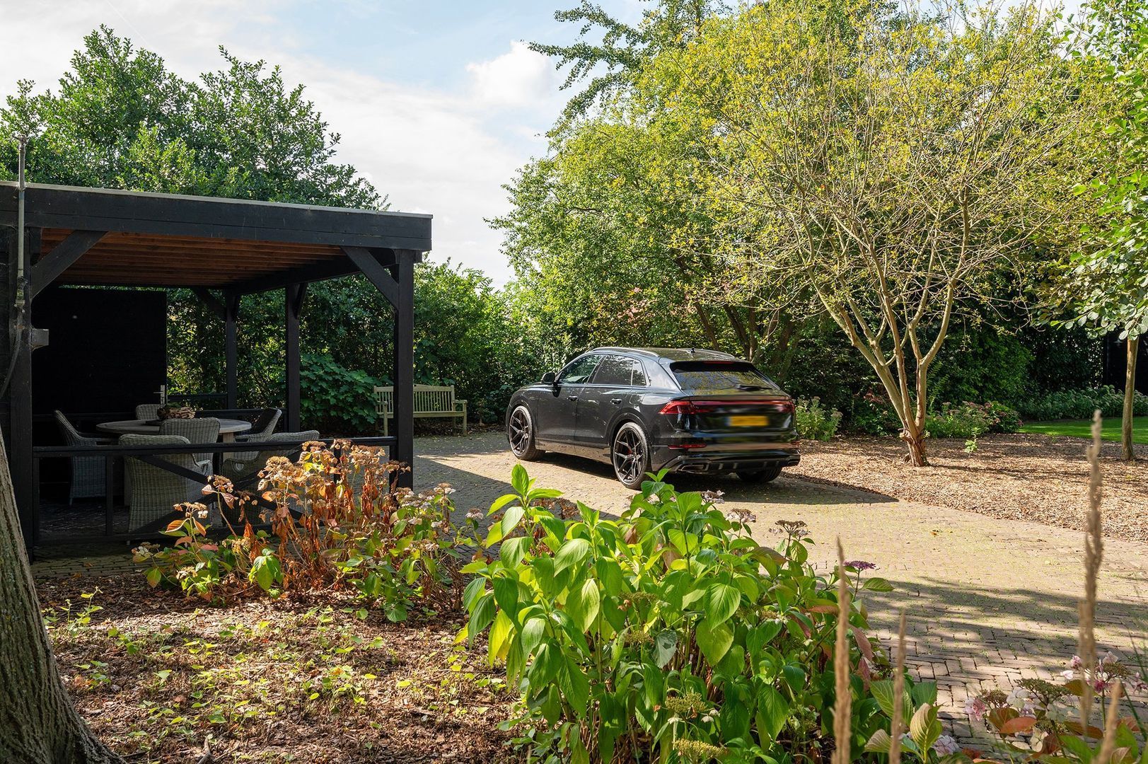 De aanwezige design straatverlichting en verlichtingsarmaturen bij het toegangshek maken geen onderdeel uit van de verkoop en worden verwijderd.