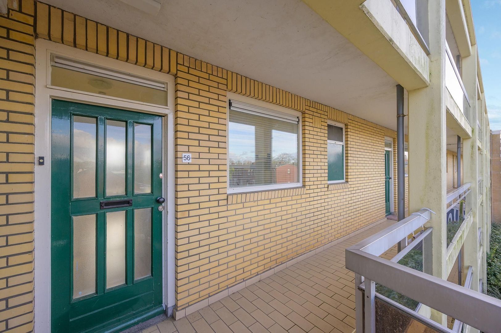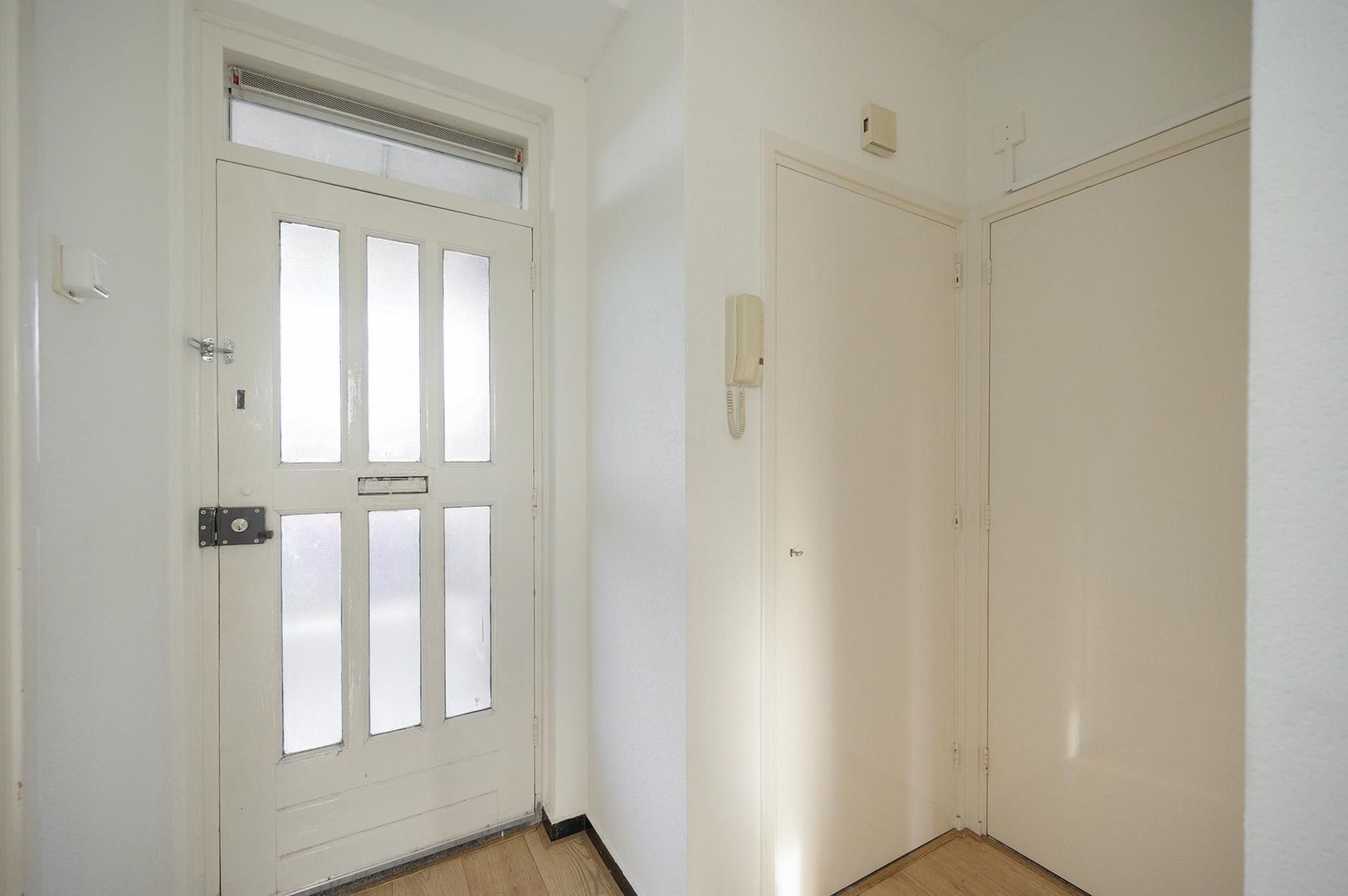 De entree van het kleinschalige appartementencomplex is voorzien van een bellentableau en biedt toegang tot de fietsenberging in de onderbouw. Via de trap of lift bereik je de 3e verdieping, waar het appartement zich bevindt.