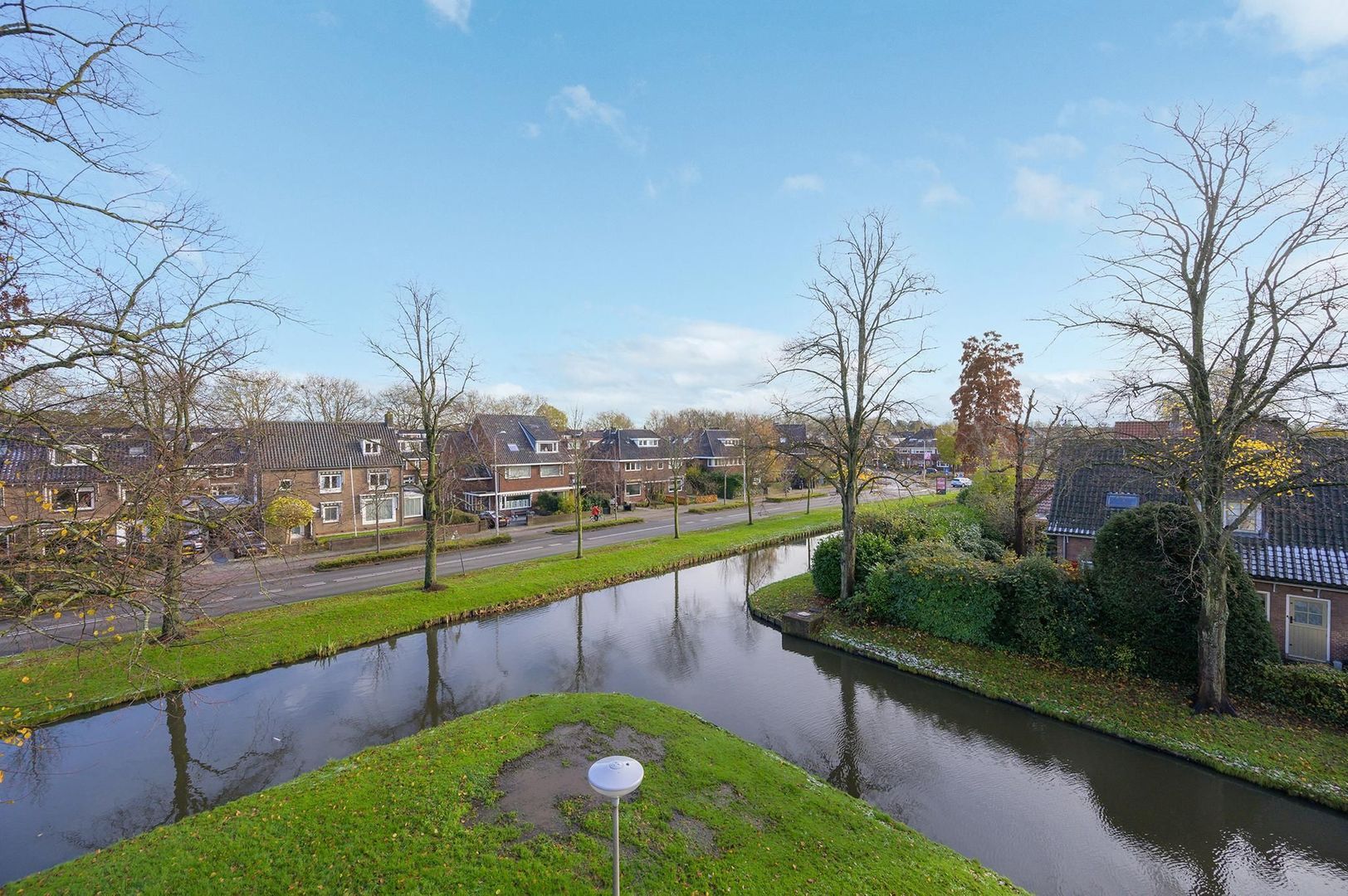 De lichte en gezellige woonkamer heeft royale raampartijen en biedt directe toegang tot het balkon. Hier geniet je van een schitterend uitzicht over het water en groen, ideaal voor ontspannen momenten of een kop koffie in de ochtendzon.