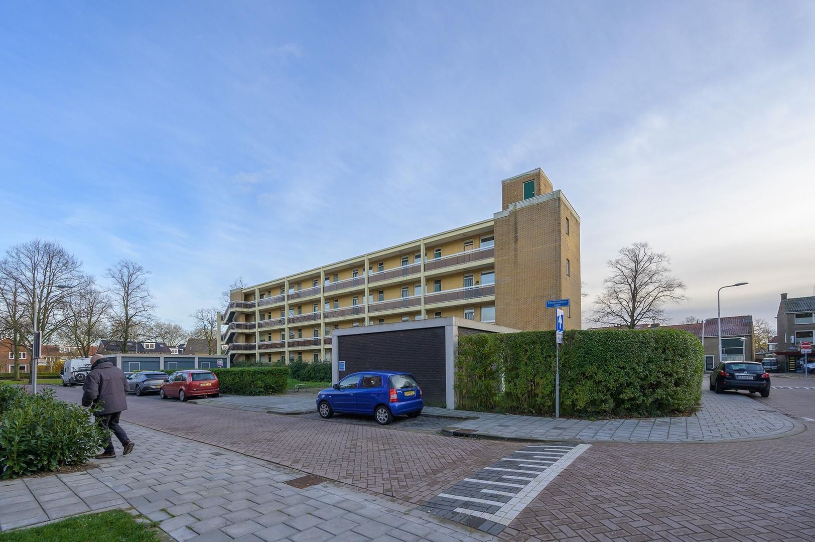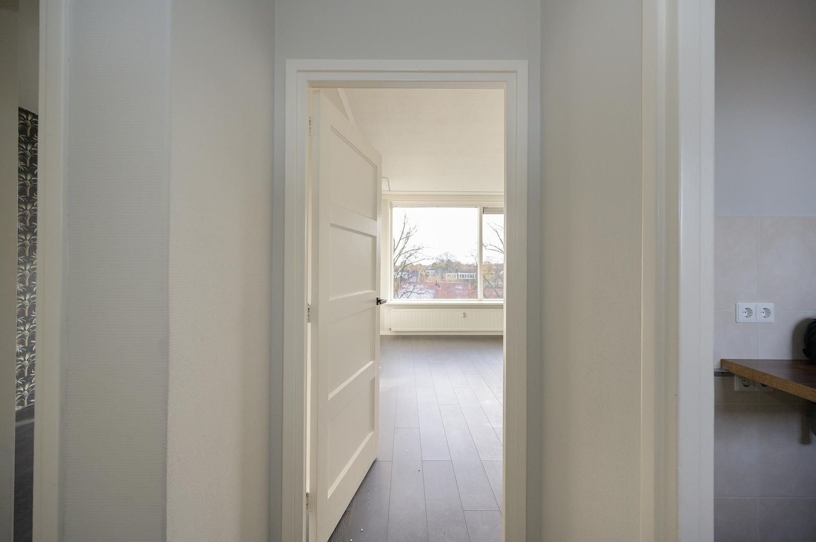 De entree van het kleinschalige appartementencomplex is voorzien van een bellentableau en biedt toegang tot de fietsenberging in de onderbouw. Via de trap of lift bereik je de 4e verdieping, waar het appartement zich bevindt.