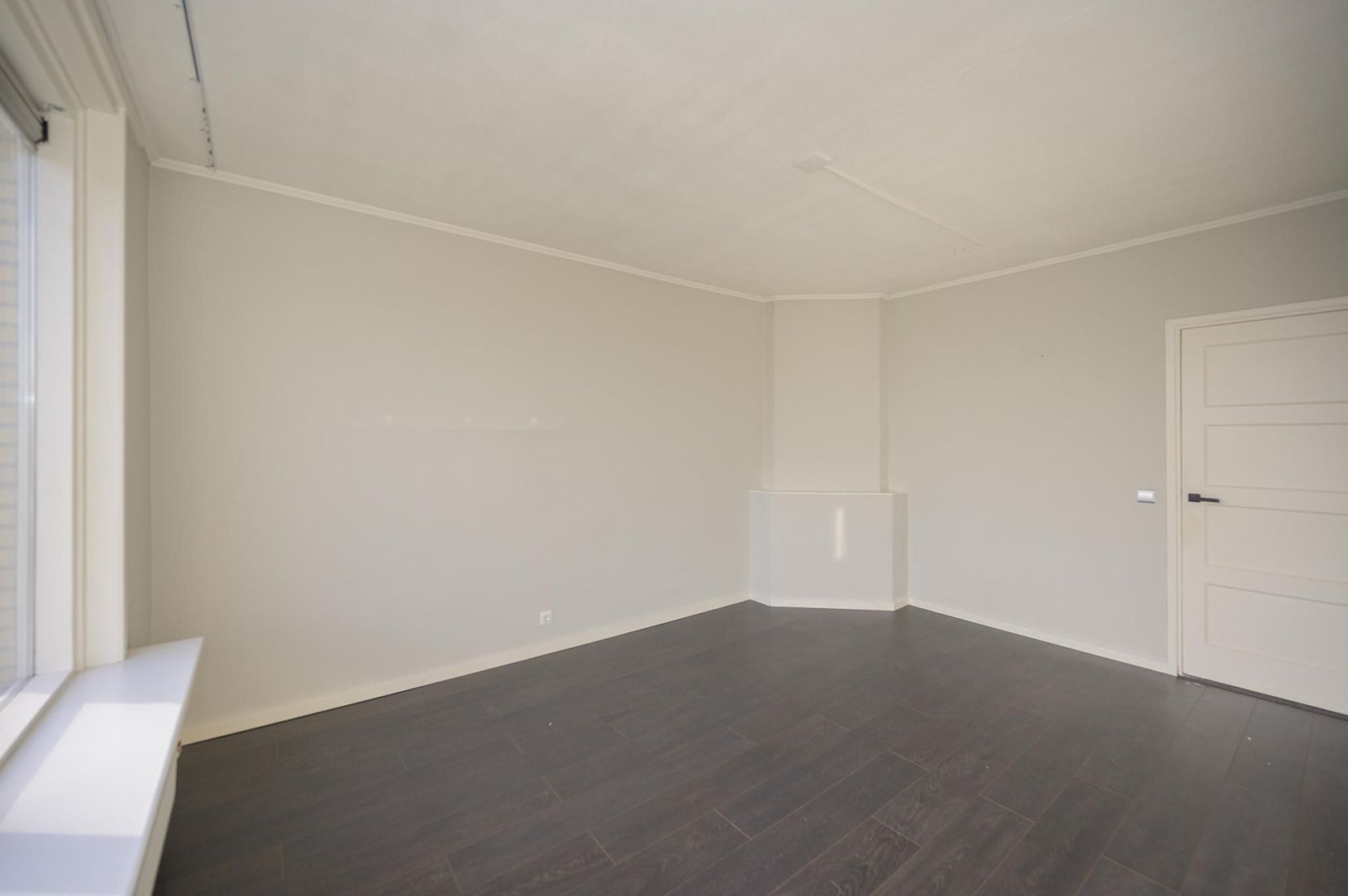 De lichte en gezellige woonkamer heeft royale raampartijen en biedt directe toegang tot het balkon. Hier geniet je van een schitterend uitzicht over het water en groen, ideaal voor ontspannen momenten of een kop koffie in de ochtendzon.