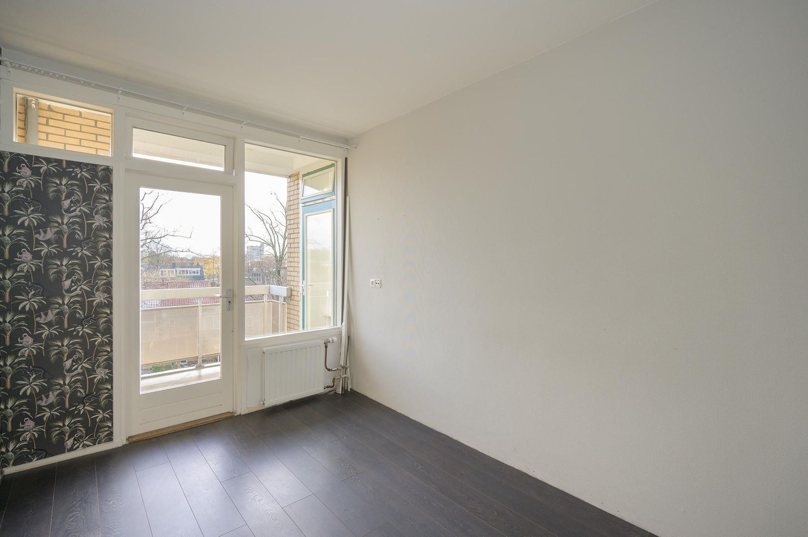De ruime slaapkamer biedt eveneens toegang tot het balkon. Een rustige plek om heerlijk te ontwaken met uitzicht op het water. De slaapkamer is voorzien van een vaste kast.