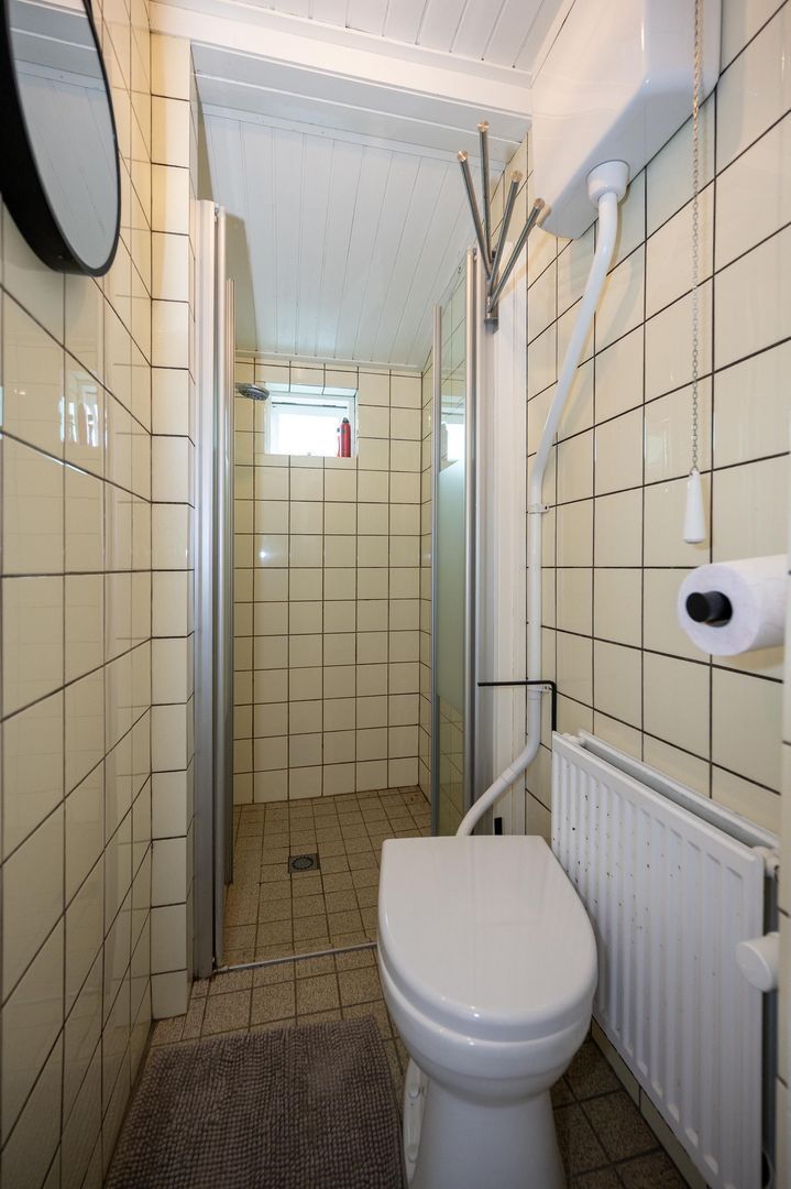 Bij binnenkomst bevindt de keuken zich aan de linkerkant, uitgevoerd met een houten aanrechtblad en bijpassende spatbladen. Tevens is hier ook de wasmachine gesitueerd. Terwijl u kookt, geniet u van het uitzicht op de ruime, groene tuin. Hier is ook voldoende plek voor een gezellige zithoek om te relaxen, terwijl de zon op elk moment van de dag een plekje in de tuin verwarmt. In de tuin staat bovendien een handig tuinhuisje, ideaal voor het opbergen van fietsen en andere spullen. De gehele woning is keurig afgewerkt en volledig gestukt, wat zorgt voor een strakke en moderne uitstraling. Vanuit de keuken loopt u moeiteloos door naar de woonkamer en de volledig betegelde badkamer, uitgerust met een inloopdouche, douchedeur en toilet. De badkamer volledig betegeld is uitgerust met een inloopdouche, douchedeur en toilet. Recht voor u leidt de trap naar de slaapkamer op de eerste verdieping. De stijlvolle woonkamer straalt rust en comfort uit. De zachte, neutrale kleuren zorgen voor een warme en uitnodigende sfeer. Grote ramen met lichte gordijnen laten volop daglicht binnen, wat de ruimte extra ruimtelijk maakt. Een ideale plek om tot rust te komen. De eethoek vormt een warme, uitnodigende plek in het huis. Een plek waar comfort en sfeer samenkomen.