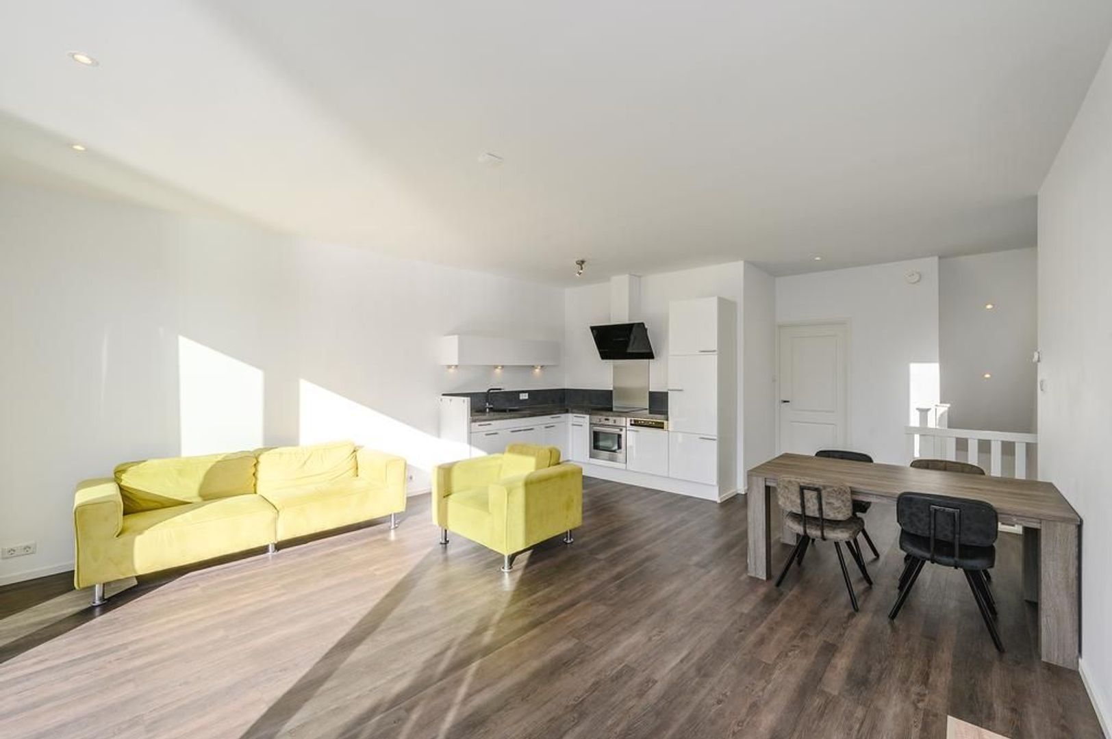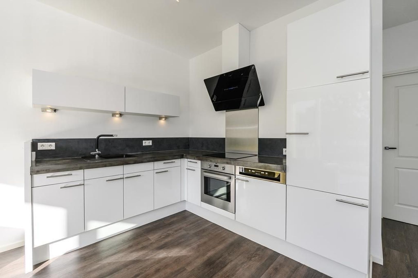 Binnenkomend in de woning betreed je een ruime woonkamer, die doordrenkt is met natuurlijk licht vanuit de grote glazen schuifpui. De indeling is ontworpen om een gevoel van openheid te creëren, waardoor de woonruimte ruimtelijk aanvoelt. De moderne keuken is voorzien van alle benodigde apparatuur en is geplaatst in een L-vorm.