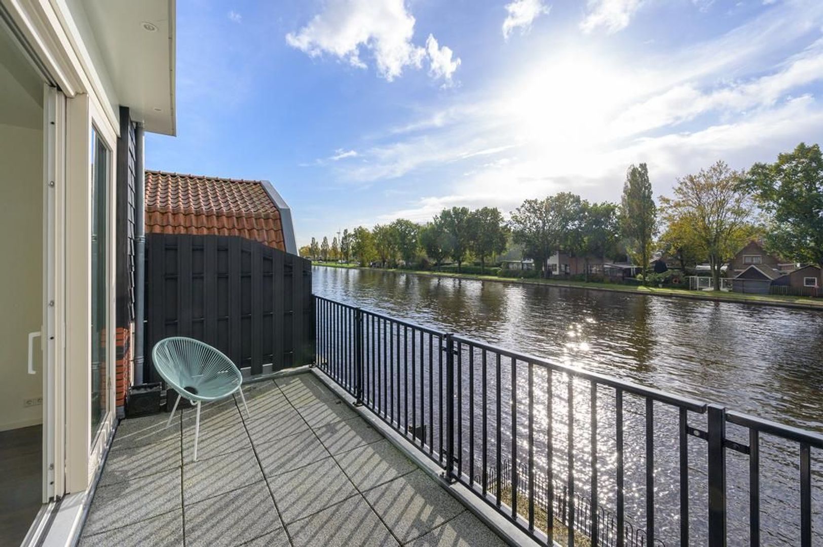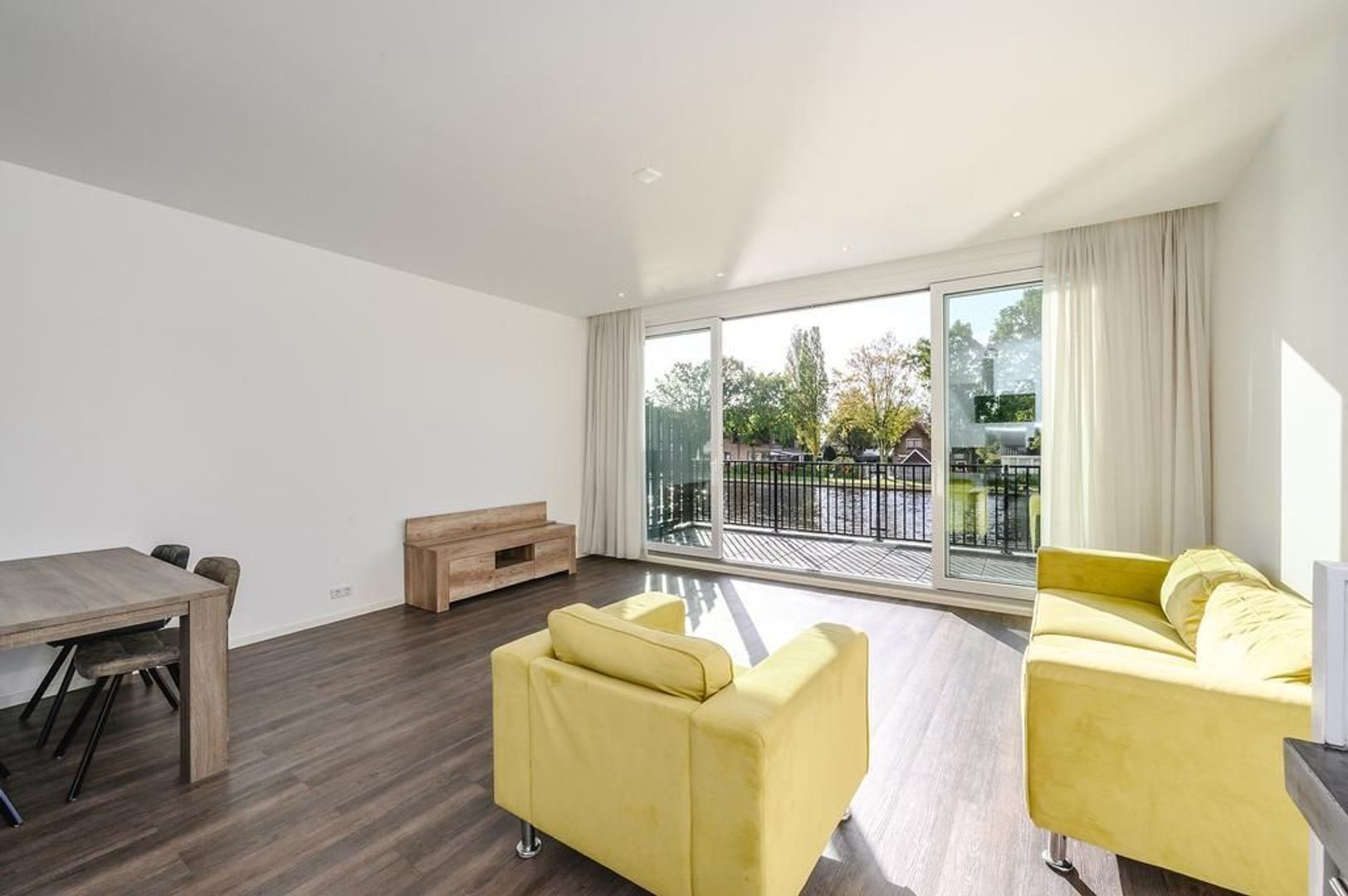 Riante lichte woonkamer met zonnig terras aan het vaarwater