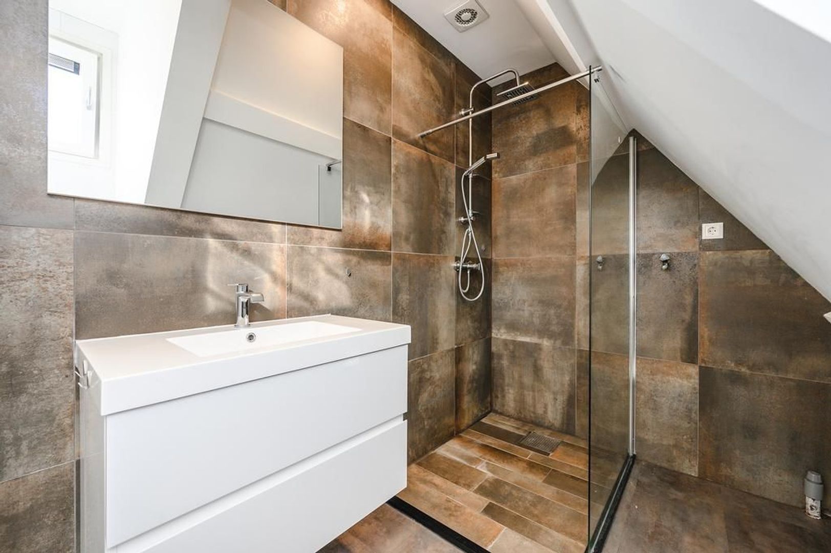 Het appartement beschikt over twee comfortabele slaapkamers met beiden een dakkapel. De luxe badkamer is uitgerust met een inloopdouche, een stijlvol wastafelmeubel en een toilet.