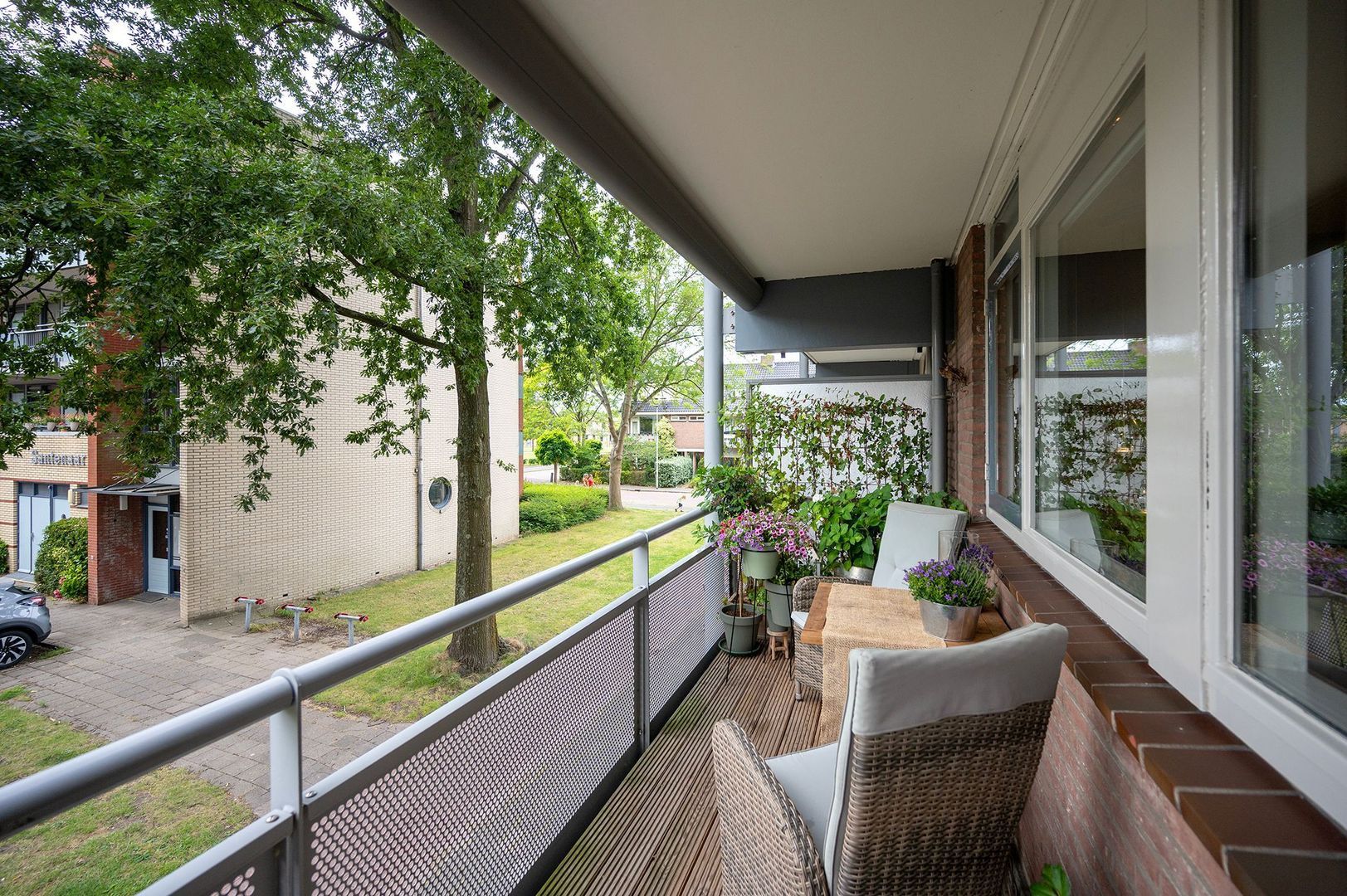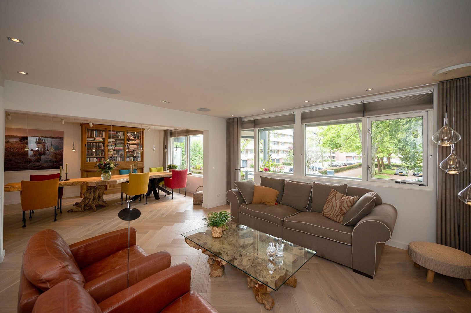 Grenzend aan de woonkamer bevindt zich een woningbreed balkon op het zuidwesten – perfect om te genieten van de middag- en avondzon. Alle ramen zijn voorzien van duette zonwering en stijlvolle in-between gordijnen, wat zorgt voor veel privacy.