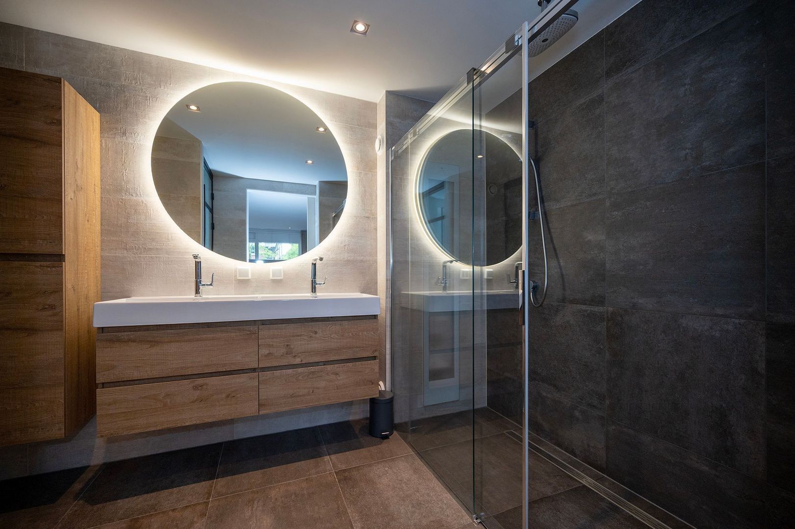 - Badkamer en-suite met dubbel wastafelmeubel, inloopdouche met regendouche en Sunshower