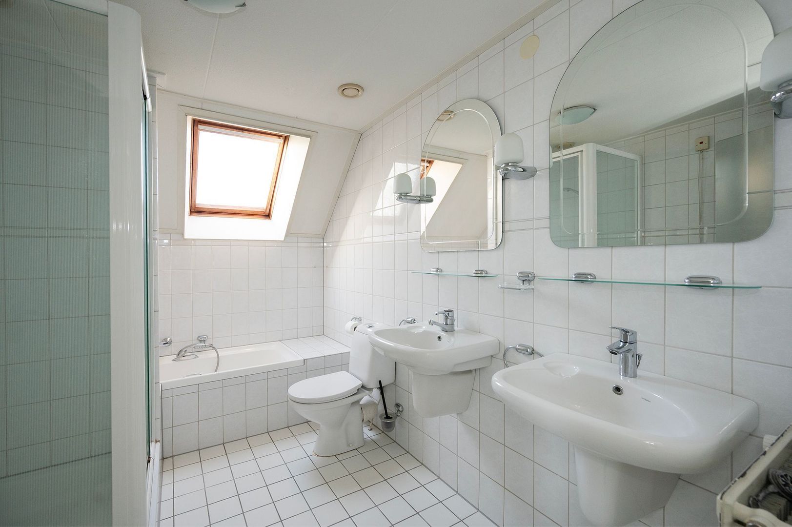 De oorspronkelijke badkamer is royaal van opzet en uitgerust met een dubbele wastafel, ligbad, separate douche en een tweede toilet. Een ideale ruimte om in alle rust geheel naar eigen smaak te moderniseren.