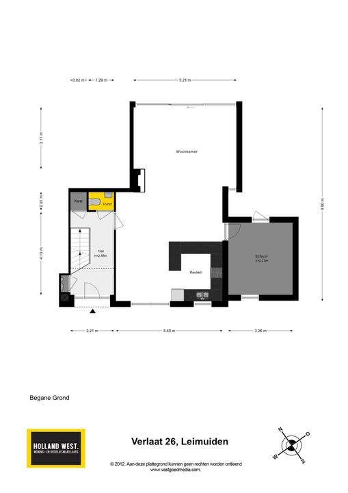 De Meetinstructie is gebaseerd op de NEN2580. De Meetinstructie is bedoeld om een meer eenduidige manier van meten toe te passen voor het geven van een indicatie van de gebruiksoppervlakte. De Meetinstructie sluit verschillen in meetuitkomsten niet volledig uit, door bijvoorbeeld interpretatieverschillen, afrondingen of beperkingen bij het uitvoeren van de meting. Het nen2580 meetrapport wordt aan de koopakte gekoppeld. Deze informatie is door ons met de nodige zorgvuldigheid samengesteld. Onzerzijds wordt echter geen enkele aansprakelijkheid aanvaard voor enige onvolledigheid, onjuistheid of anderszins, dan wel de gevolgen daarvan. Alle opgegeven maten en oppervlakten zijn indicatief.