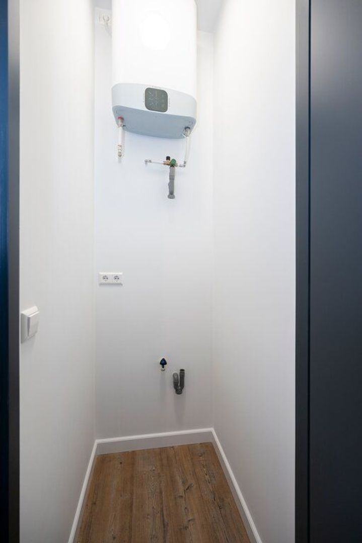 De inpandige bergruimte heeft aansluiting voor de wasmachine en wasdroger.