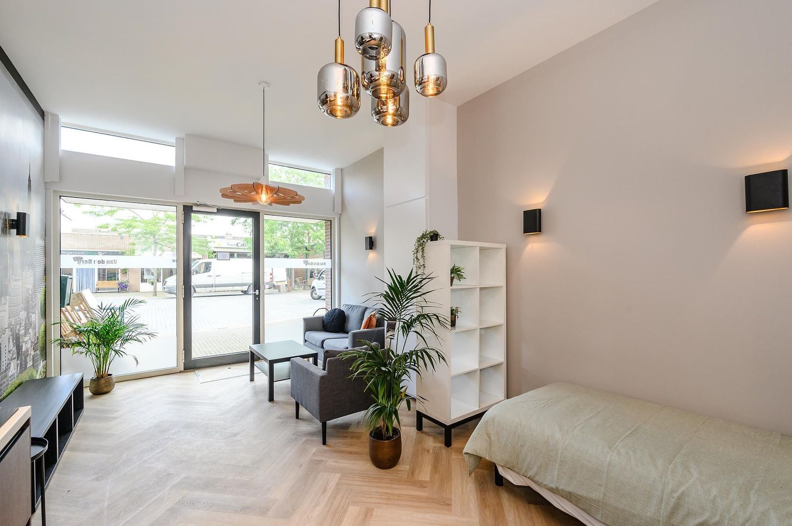 Door het ontbreken van wanden in de ruimte ontstaat er een gevoel van ruimtelijkheid.