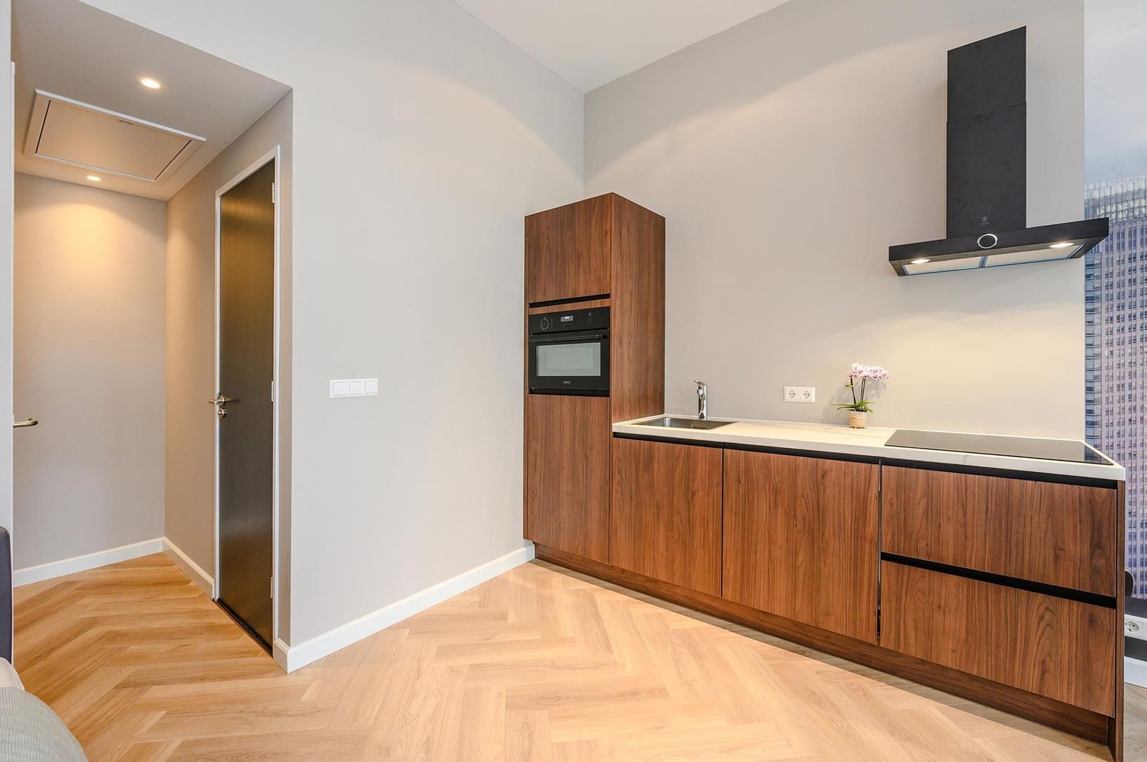 Alle wanden zijn glad afgewerkt en er zijn opbouwspots aangebracht, dit geeft het geheel een hoogwaardig afwerkingsniveau. Mede door het hoge plafond voelt de woning verrassend ruim aan. De luxe keuken heeft een rechte opstelling en is van alle gemakken voorzien. Het werkblad zorgt voor een chique uitstraling.