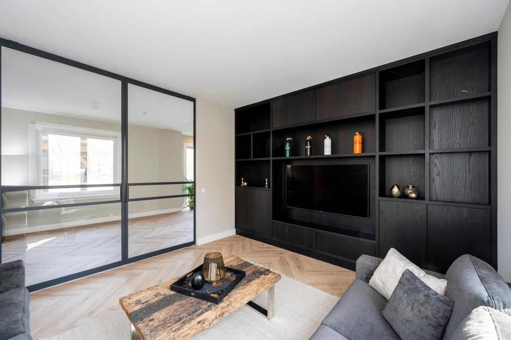 Vanuit de living is een doorgang naar de tv-kamer, compleet met inbouwmeubel en uiteraard afsluitbaar middels de stalen taatsdeuren.