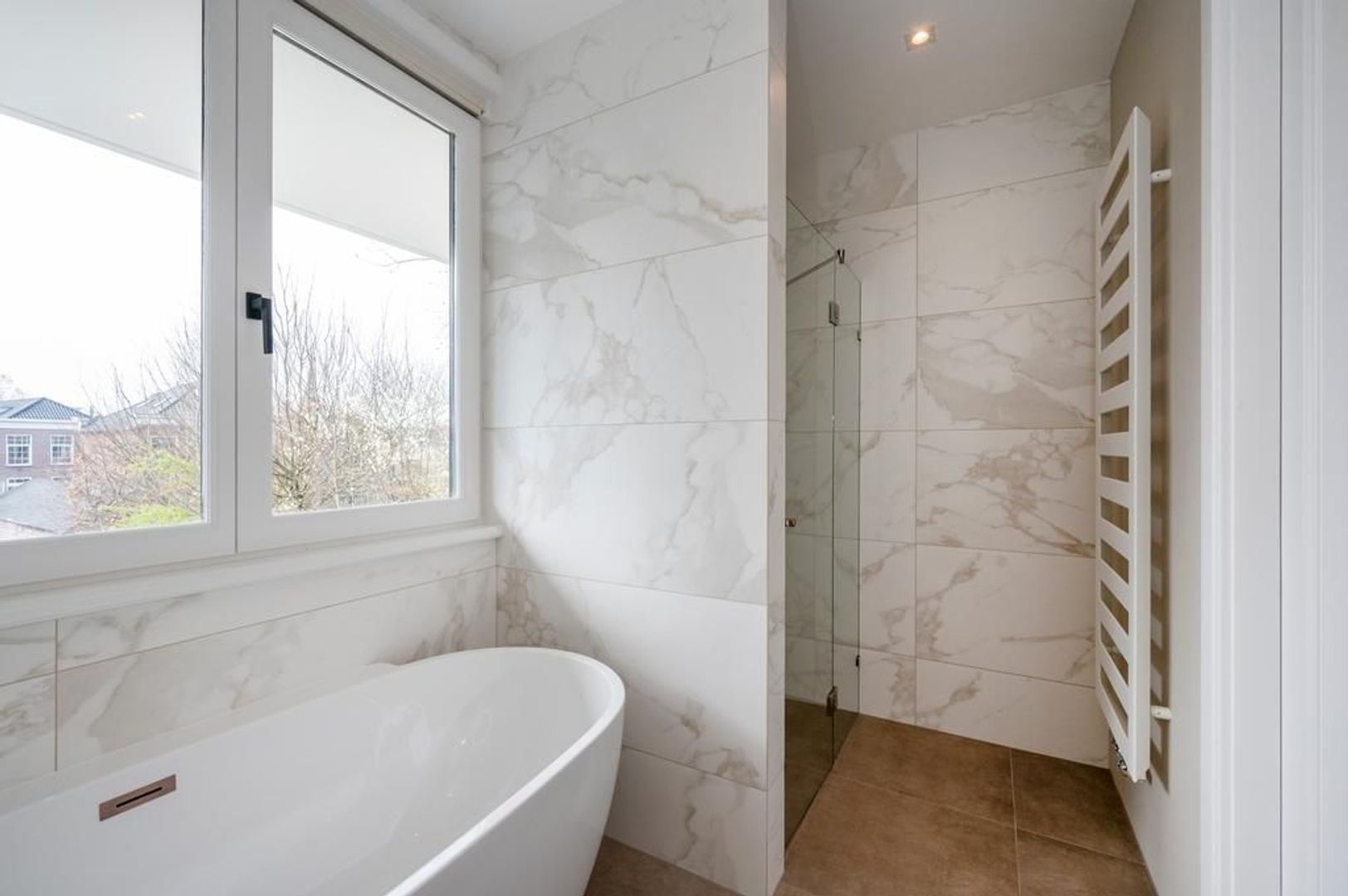 Toegang tot de drie royale slaapkamers en een centraal gelegen badkamer welke voorzien is van groot bad-meubel, inloopdouche en het 4e toilet.
